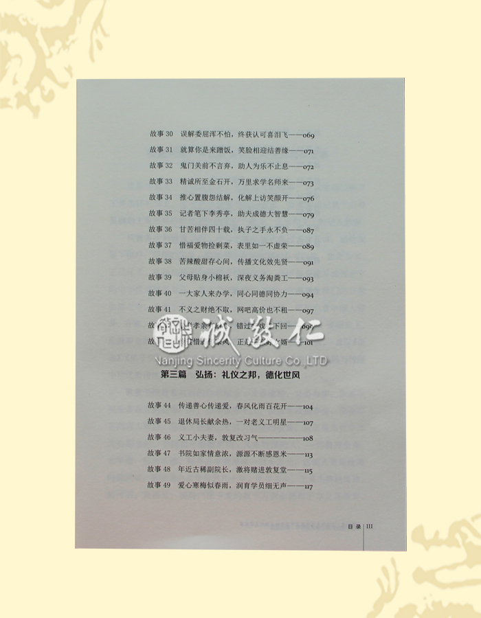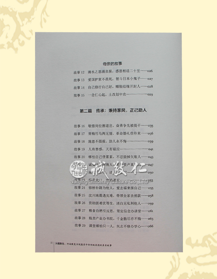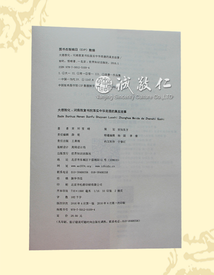 书名:大德敦化:河南敦复书院落实中华传统美德的真实故事 作者:宵旰 雪晴 出版社:世界知识出版社出版 日期:2016年4月版 2016年4月次印刷 ISBN:9787501251094 开本:16 原价:20.00元 【目 录 】 敦厚无悔:平民教育家王英杰的真实故事 引子:从千万富翁到平民教育家 篇 家风:积善之家,必有余庆 父亲的故事 故事1 得饶人处且饶人,荷包蛋里报大恩 故事2 但求能救人,不怕血扑门 故事3 人善天不欺,粪坑救路人 故事4 真诚相劝慰,小偷也惭愧 故事5 仁者自无敌,匪首致敬意 故事6 吃亏是便宜,从来不抱屈 故事7 德不配位恐遭殃,奖金用于修学堂 故事8 时代不同了,恭敬心不改 故事9 街坊早年作恶,一生身心遭责 故事10 长者积德行行善,终享五福临门 故事11 国共分两党,大义共担当 母亲的故事 故事12 滴水之恩涌泉报,感恩相送二十里 故事13 爱国护家不畏死,智斗日本小鬼子 故事14 自己修行自己好,赠鞋结缘开封人 故事15 一念仁心起,土改划中农 第二篇 传承:秉承家风,正几助人 故事16 敬惜岗位擦道岔,奋勇争先被提干 故事17 青梅竹马两无猜,革命婚礼俭朴来 故事18 施恩不图报,助人永不悔 故事19 人有善感,天有福应 故事20 哪怕自己债累累,不忍毁掉欠账人 故事21 诚实守信河南人,无形资产真如山 故事22 澡堂救少女,洁身不沾泥 故事23 娘是金口,吃谁谁有 故事24 修桥补路为他人,爱去福来报自己 故事25 汶川地震遇灾难,带领全家去捐款 故事26 资助困难优等生,清白无私利他人 故事27 粮食自燃引反思,坚定信念办讲堂 故事28 贱卖产业办书院,千金散尽亦不悔 故事29 课堂哪怕只一人,志不移办学心 故事30 误解委屈浑不怕,终获认可喜泪飞 故事31 就算你是来蹭饭,笑脸相迎结善缘 故事32 鬼门关前不言弃,助人为乐不止息 故事33 精诚所至金石开,万里求学名师来 故事34 推心置腹怨结解,化解上访笑颜开 故事35 记者笔下李秀亭,助夫成德大智慧 故事36 甘苦相伴四十载,执子之手永不负 故事37 惜福爱物捡剩菜,表里如一不虚荣 故事38 苦辣酸甜存心间,传播文化效先贤 故事39 父母贴身小棉袄,深夜义务掏粪工 故事40 一大家人来办学,同心同德同协力 故事41 不义之财绝不绝,网吧高价也不租 故事42 敬老孝亲有耐心,错过好戏待下回 故事43 怜贫惜弱传家风,正是王家好女婿 第三篇 弘扬:礼仪之邦,德化世风 故事44 传递善心传递爱,春风化雨百花开 故事45 退休局长献余热,一对老义工明星 故事46 义工小夫妻,敦厚改习气 故事47 书院如家情意浓,源源不断感恩来 故事48 年近古稀副院长,激将赌进敦厚堂 故事49 爱心寒梅似春雨,润育学员细无声 故事50 国学洗礼心灵,何惧深夜风雨 故事51 传统文化正能量,生活给予的奖赏 故事52 家庭破裂伤孩子,圣人面前勇忏悔 故事53 仁爱化冷漠,真诚开心锁 故事54 浪子回头金不换,改过迁善做楷模 故事55 饮水思源报亲恩,摆脱娇骄勤习劳 故事56 化解心头抑郁,家庭获得新生 故事57 传统文化成日课,从心开始转命运 故事58 高压强势女汉子,学习柔顺家和美 故事59 相由心生境随转,心病还需心药医 故事60 正己化人,实至名归 附 录 敦复书院大事迹 后 记