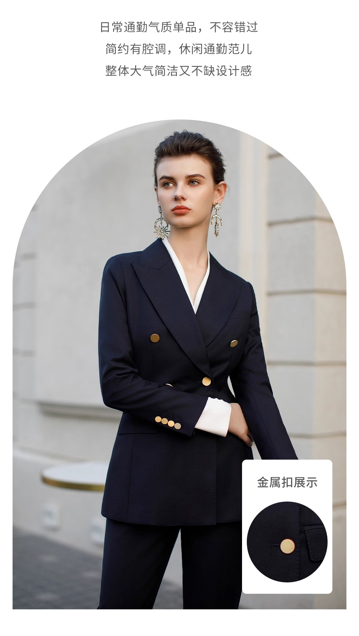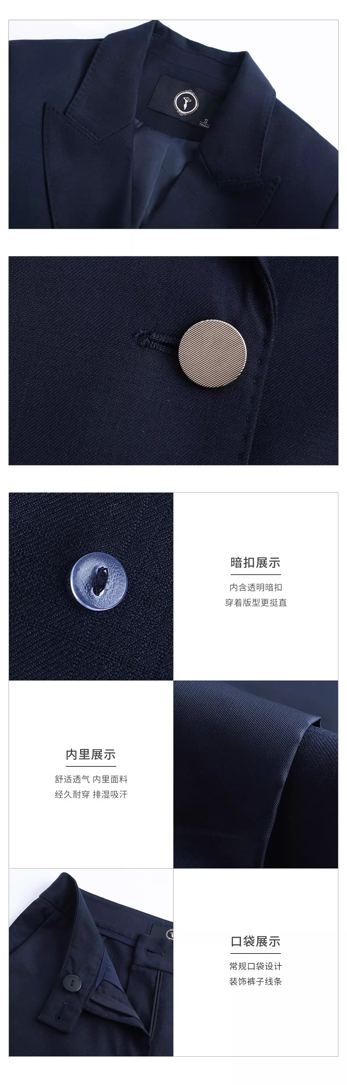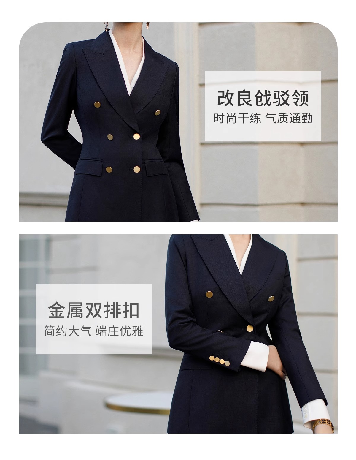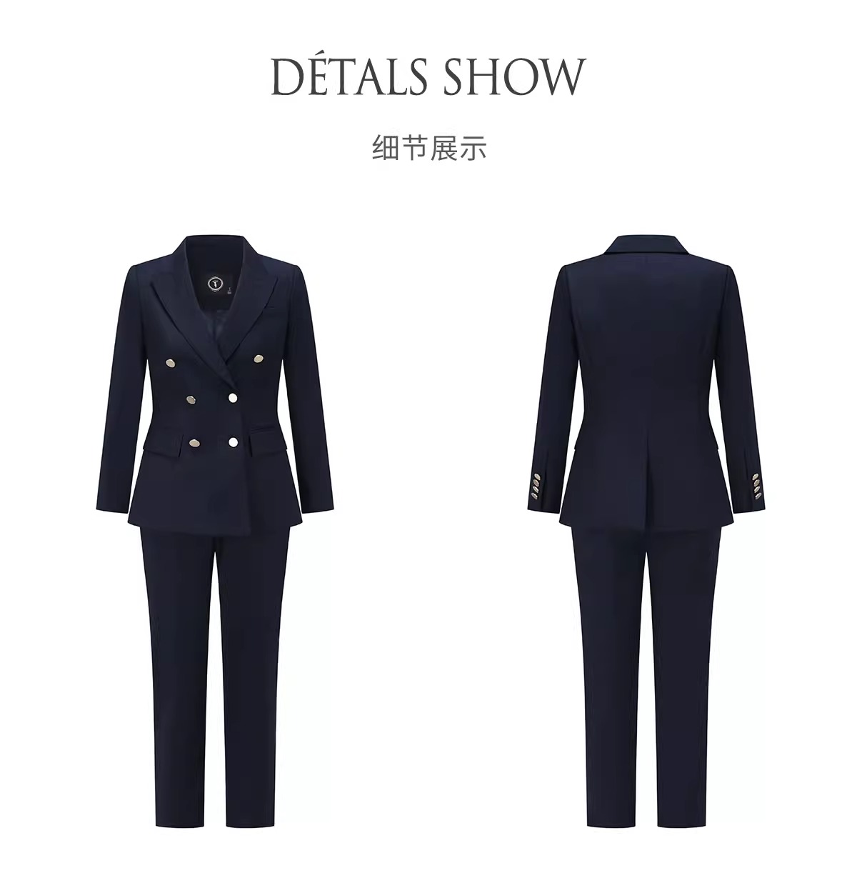墨蓝色羊毛西装套装女职业正装新款暗格纹干练双排扣西服外套春