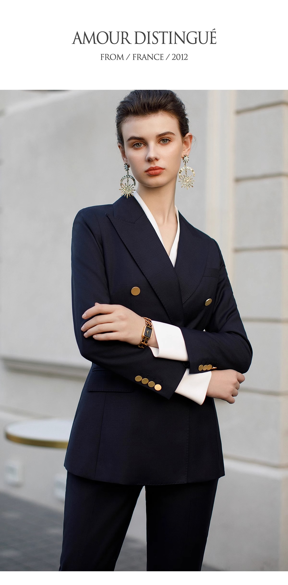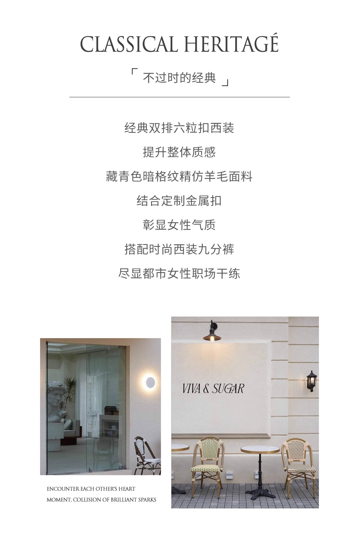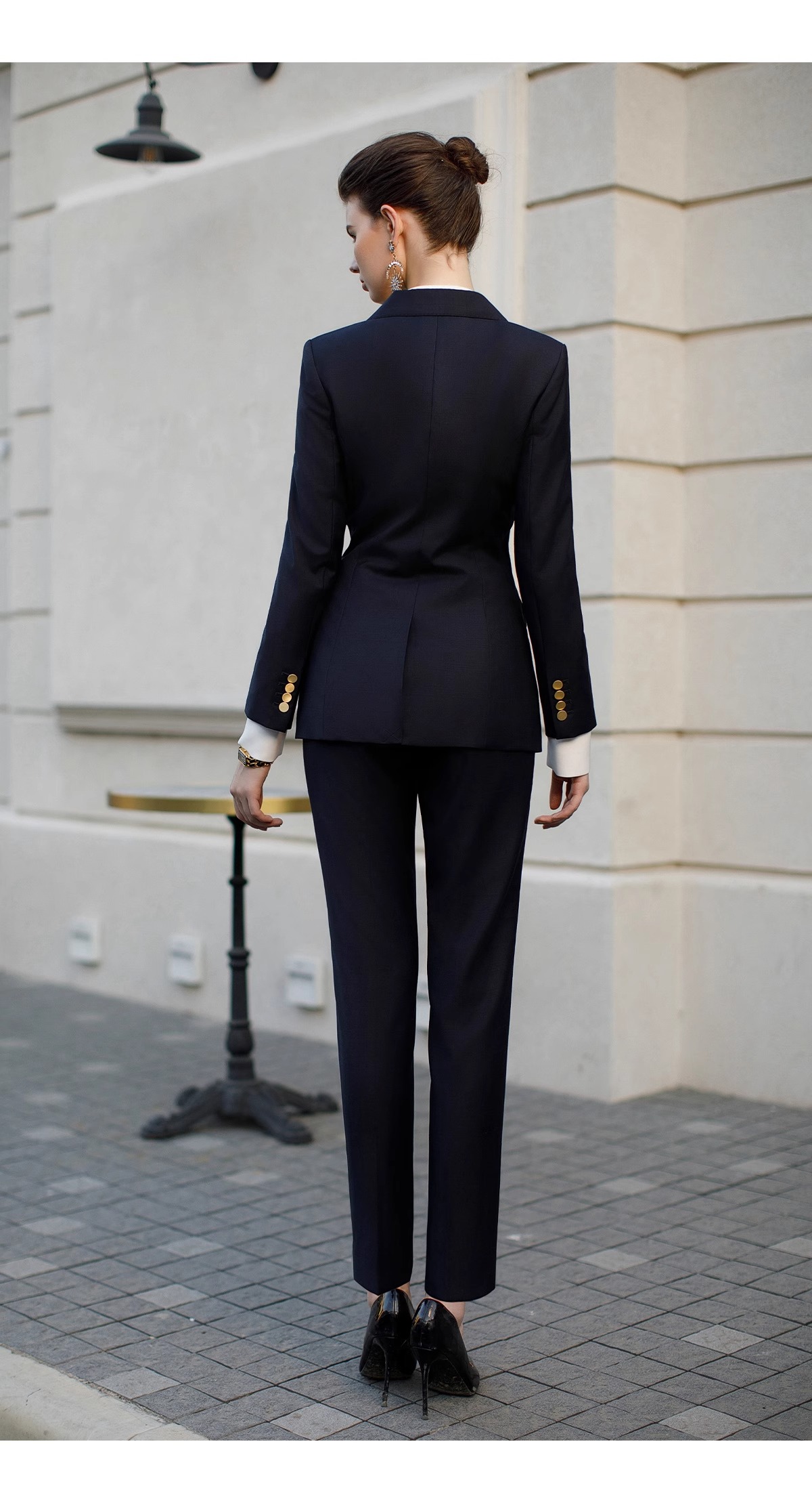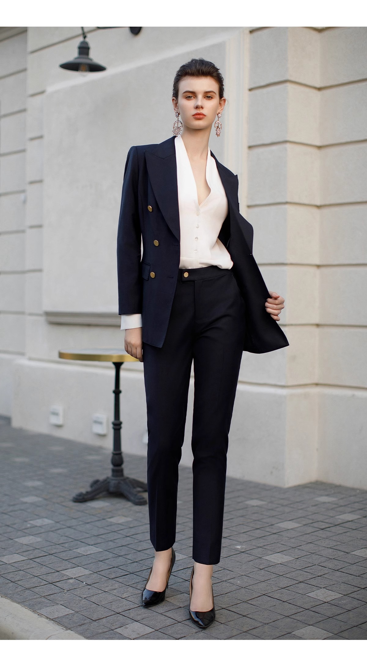 墨蓝色羊毛西装套装女职业正装新款暗格纹干练双排扣西服外套春