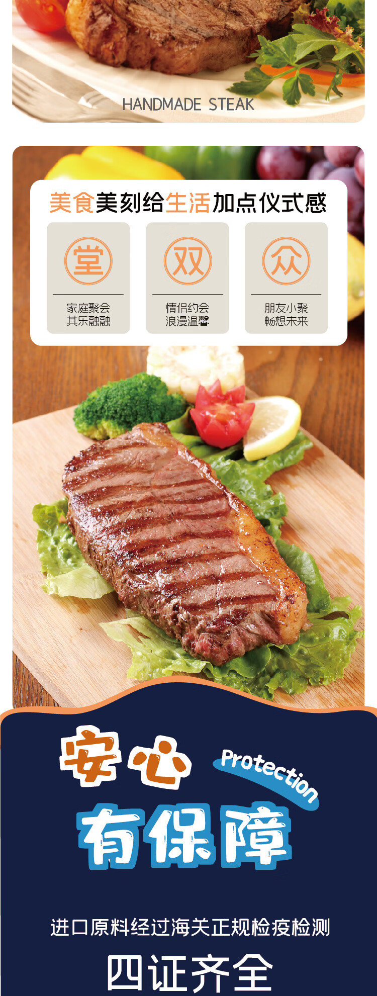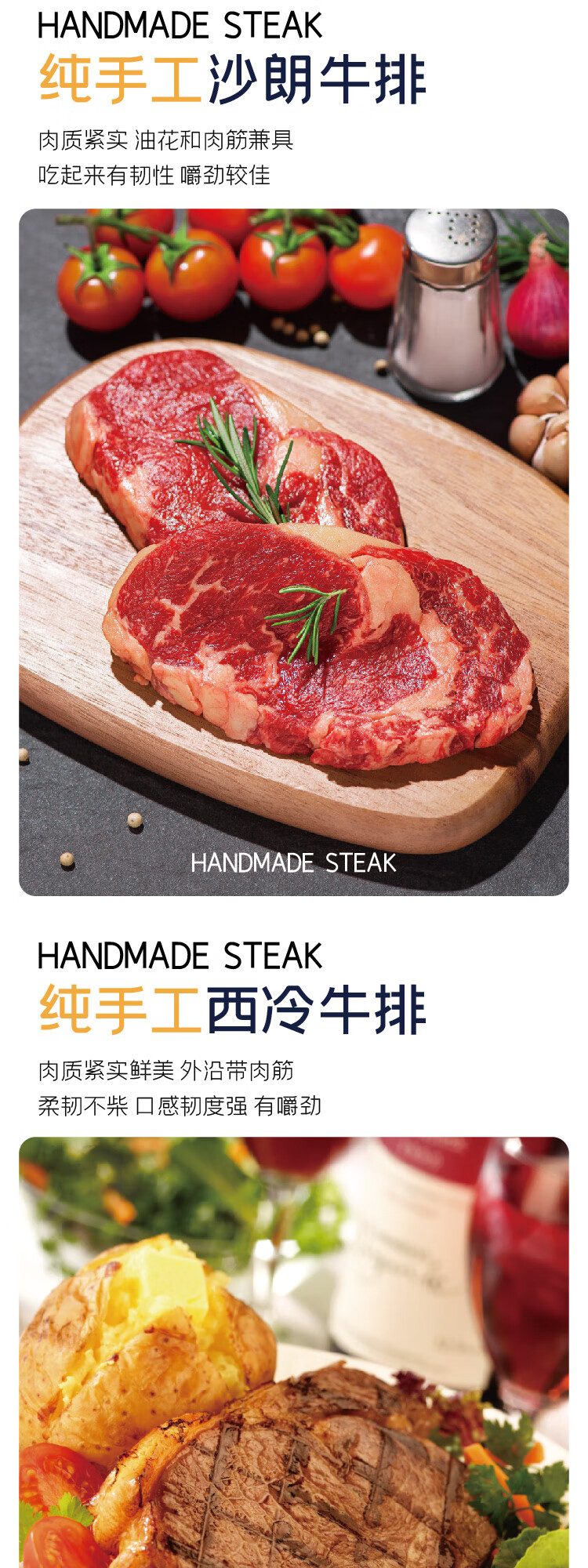 联豪食品原肉整切手工西冷沙朗牛排套餐8片1440g