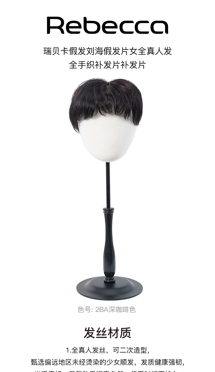 Rebecca瑞贝卡假发刘海假发片女全真人发全手织补发片补发片