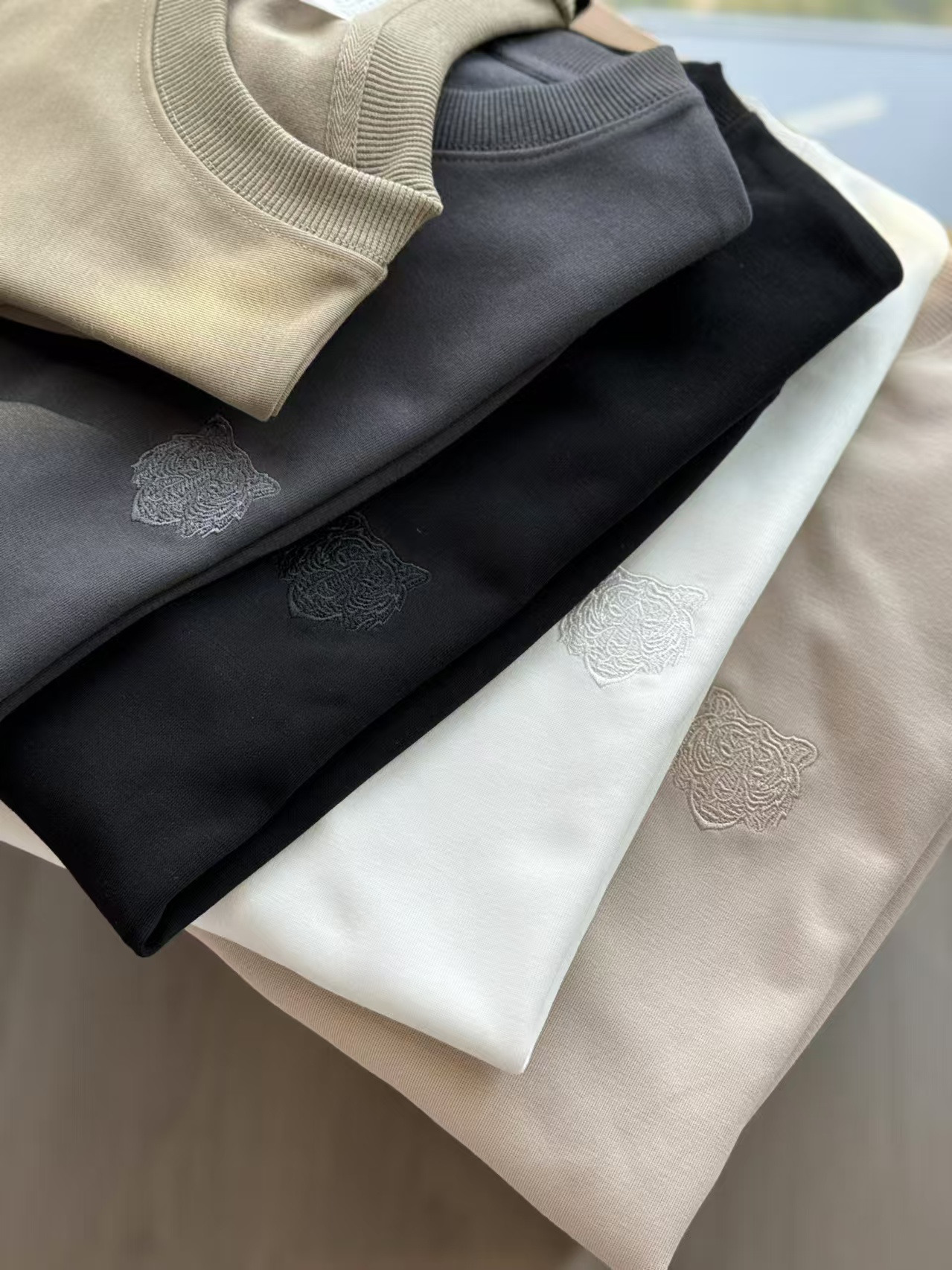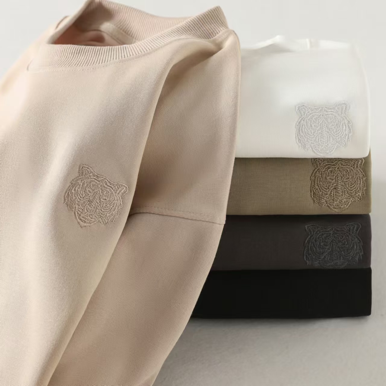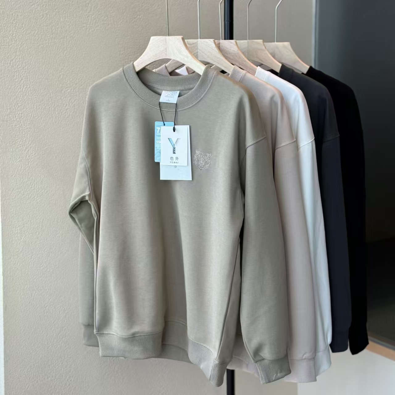 出口日单品质,纯色极简干净,胸前立体的虎头刺绣,自带阳光少年感,穿卫衣的季节,做内搭也不会单调!