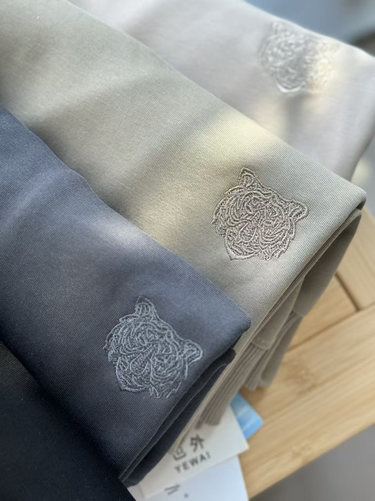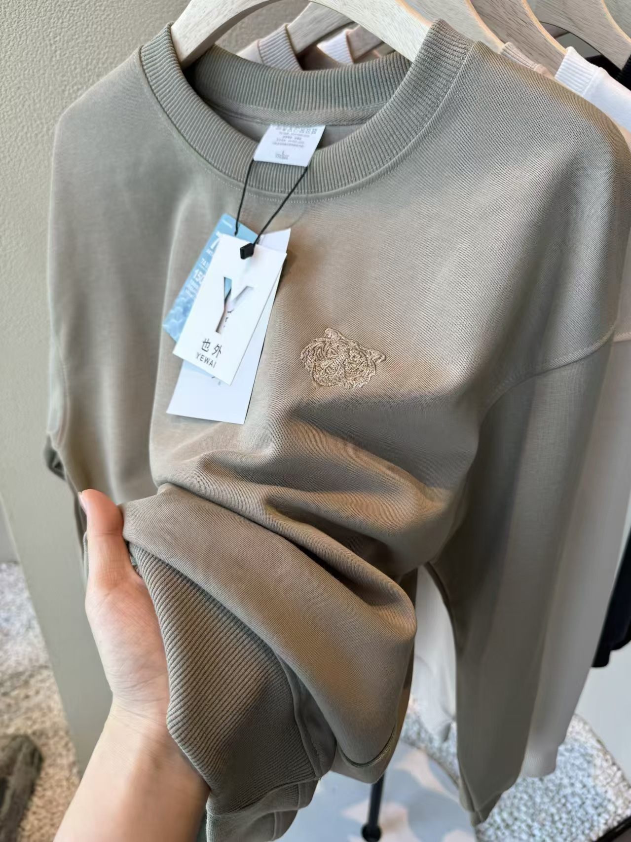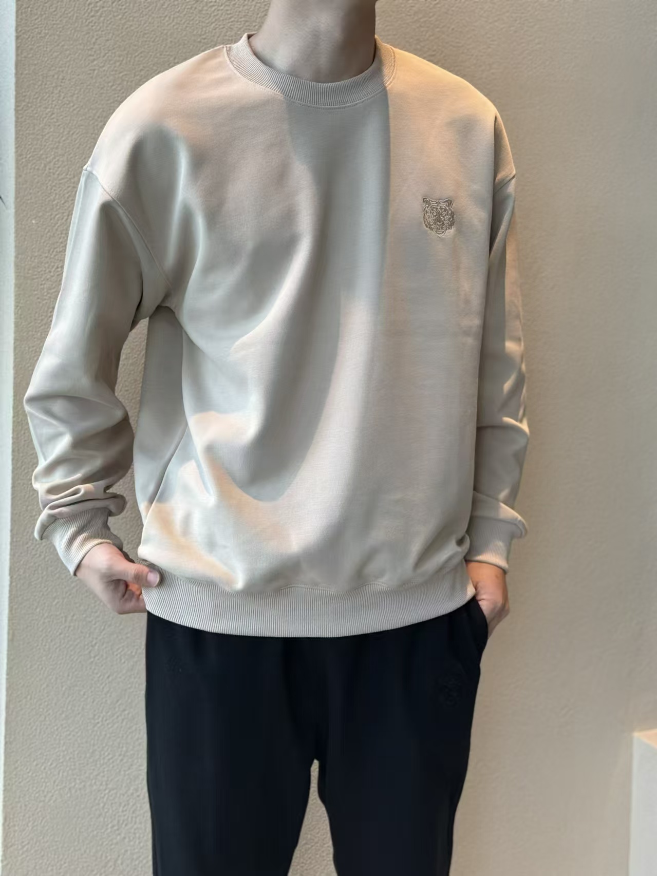 出口日单品质,纯色极简干净,胸前立体的虎头刺绣,自带阳光少年感,穿卫衣的季节,做内搭也不会单调!
