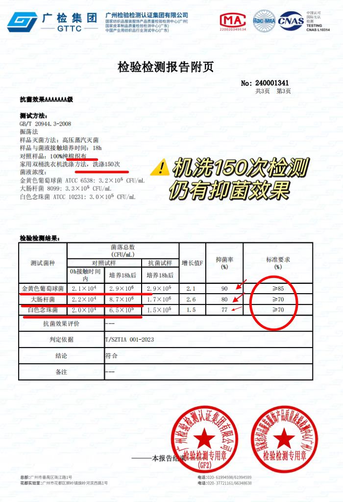 7A抗菌100%棉面料 亲肤、透气柔软。