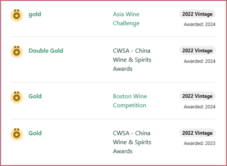 (讲个好玩的,23年酒庄就把2022年份送去CWSA参赛,只拿了金奖。24年再次送参赛,结果捧回来双金奖!难以置信!)