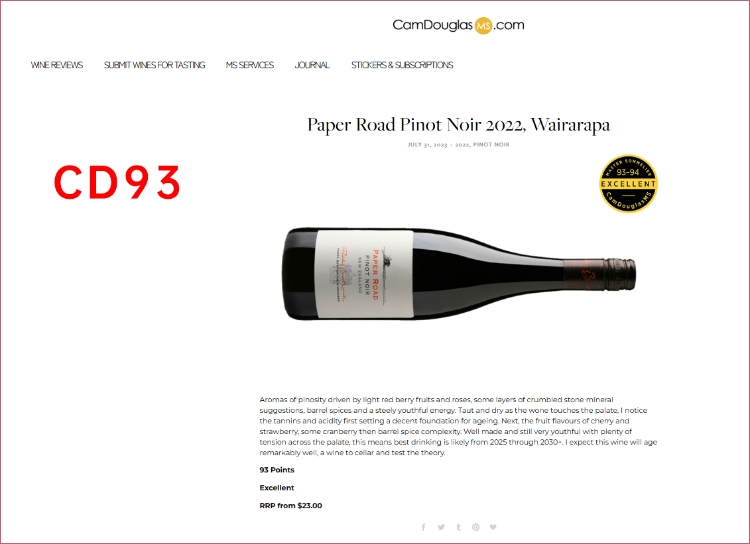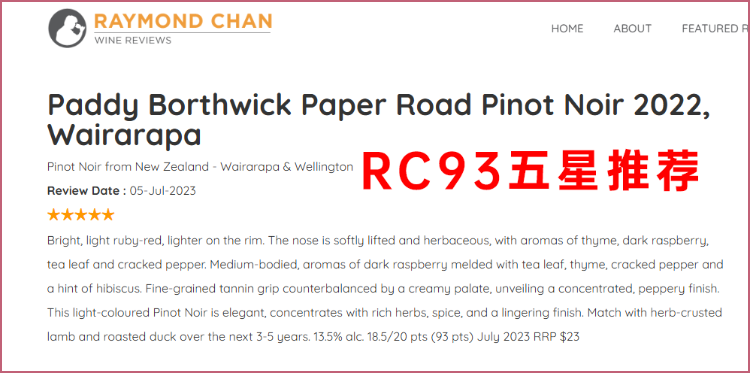 93分多金奖!新西兰名庄!纸路黑皮诺红葡萄酒 Paper Road Pinot Noir 2022