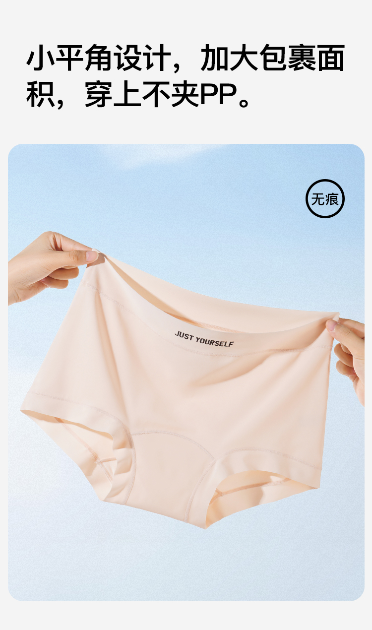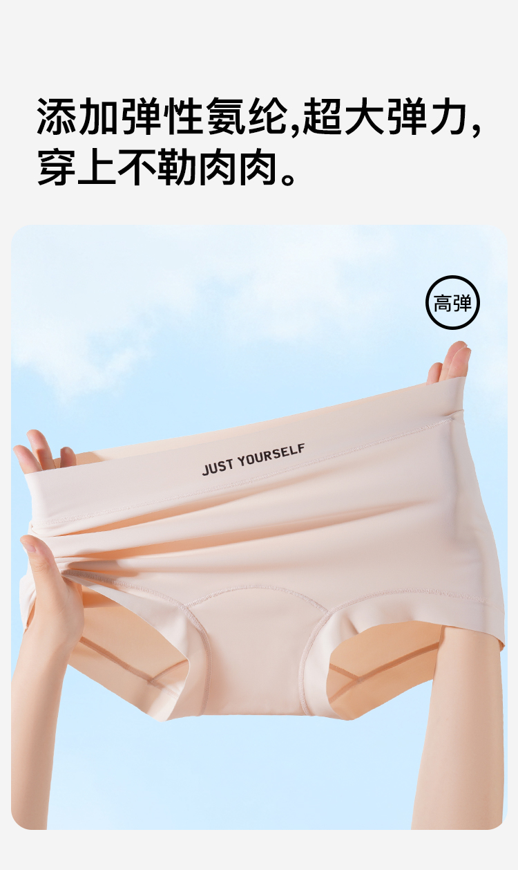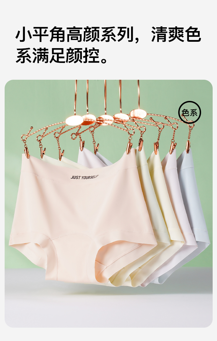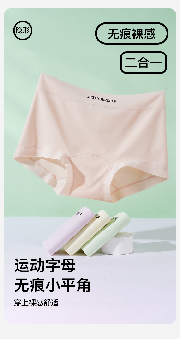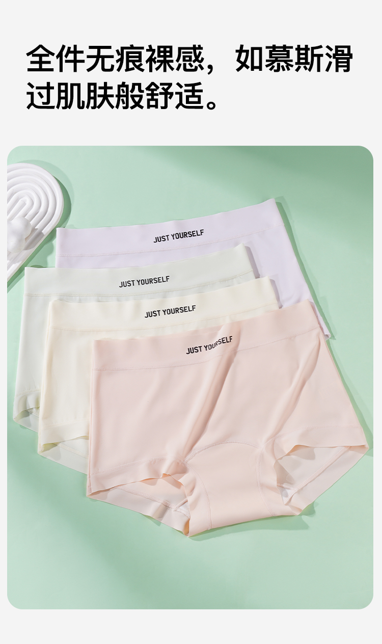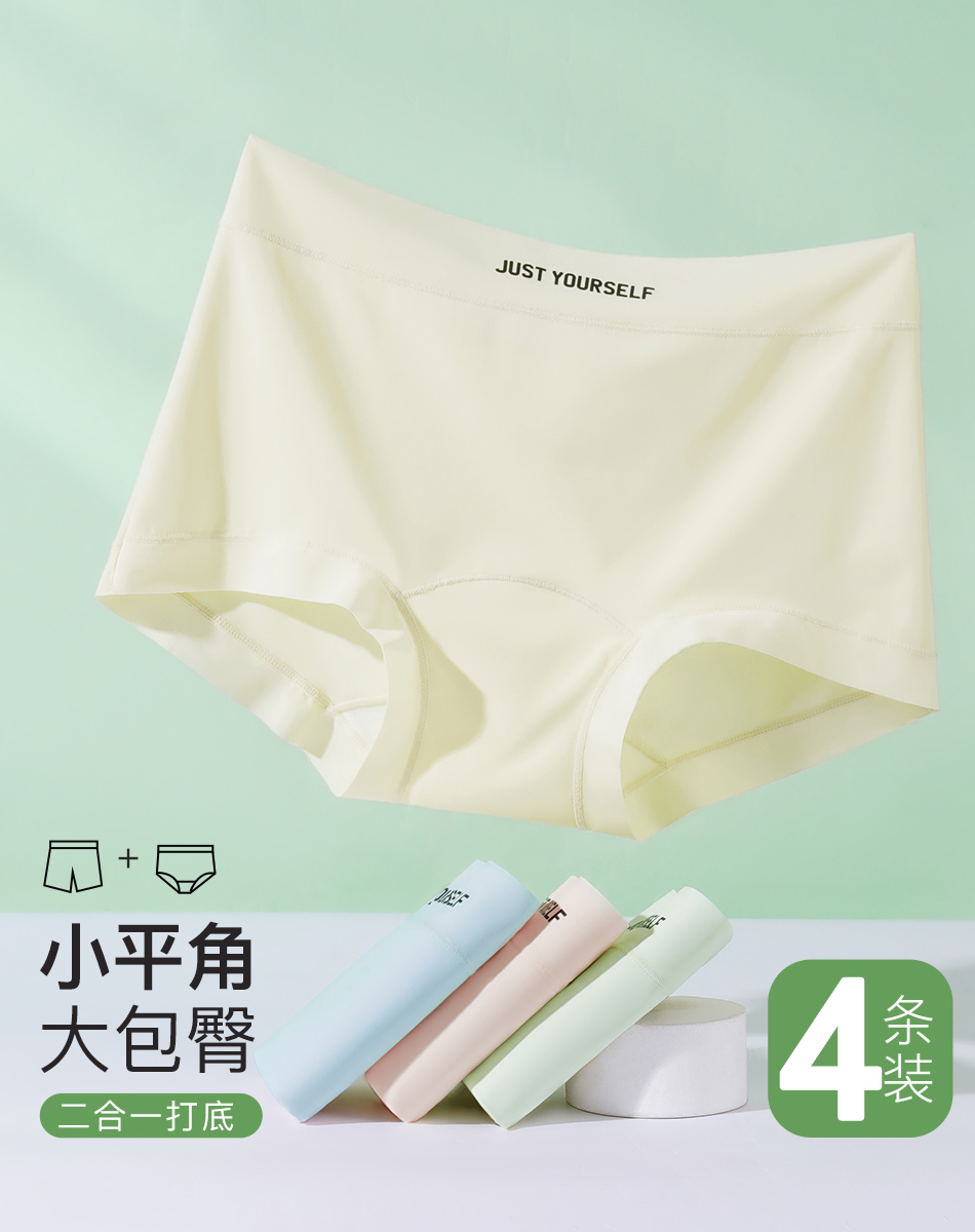 【4条装】薄款隐形无痕冰丝字母小平角大包臀内裤女纯棉加长内裆3812字母无痕平角裤