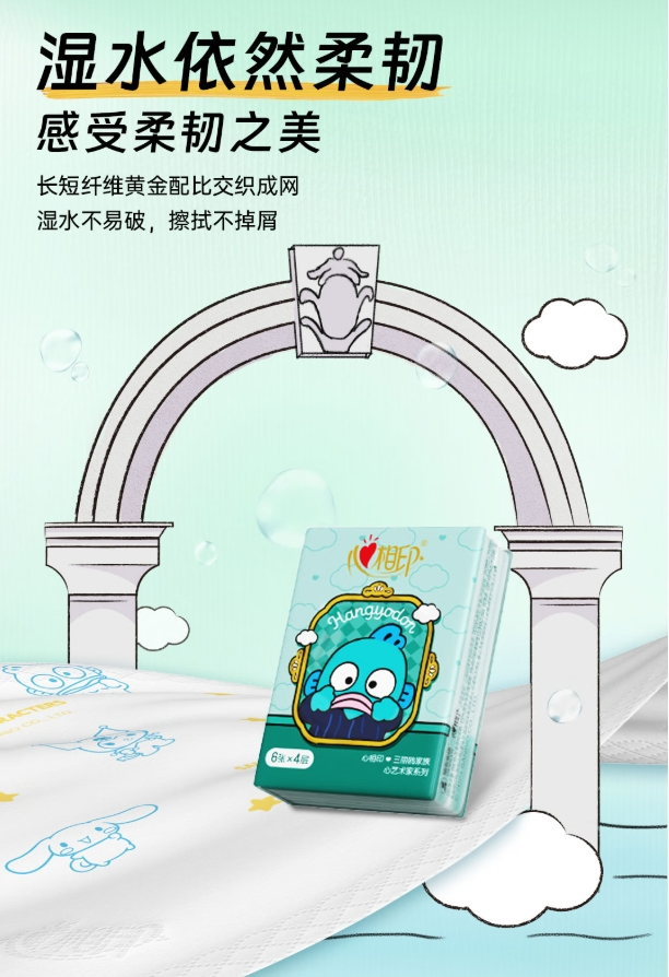 心相印品诺IP款4层6片 印花手帕纸(款式随机) 单包