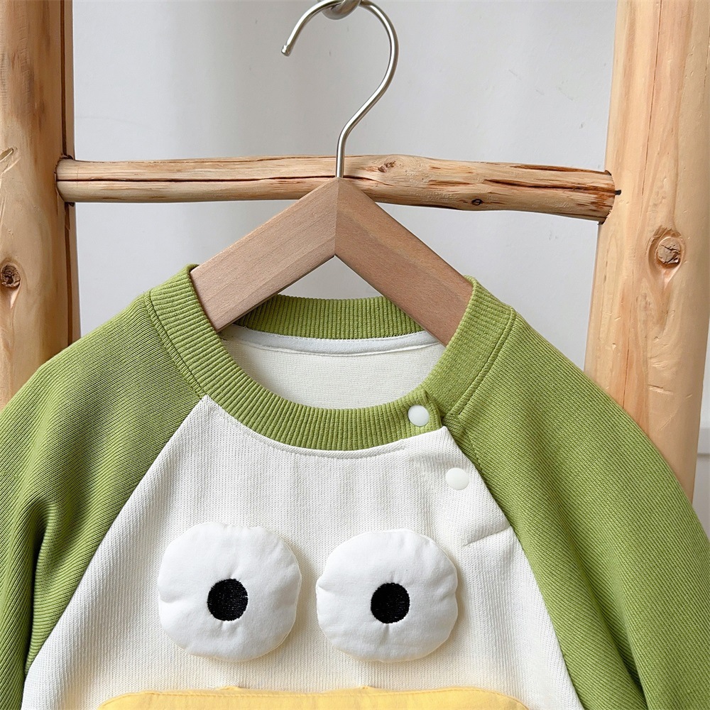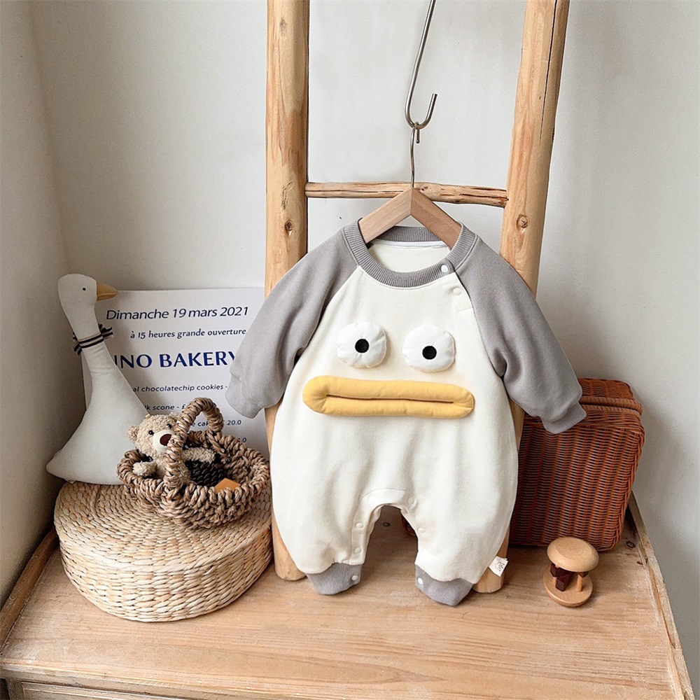 【搞怪大嘴卡通立体婴儿连体衣】春季新款衣服装饰宝宝长袖外出爬爬服