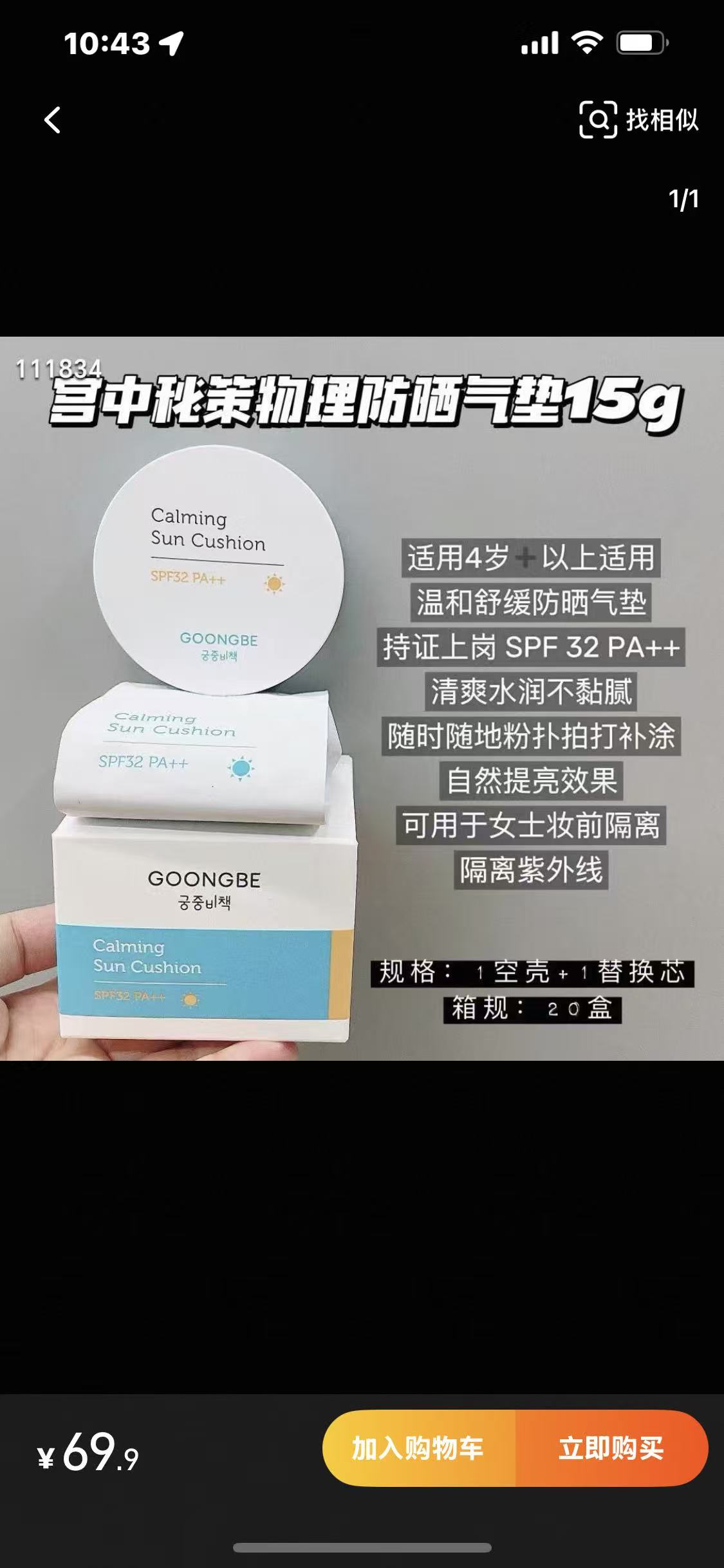 清仓,处理26年1月保质期宫中秘策儿童防晒气垫防晒霜宝宝婴儿女童专用婴幼儿用品女防晒乳