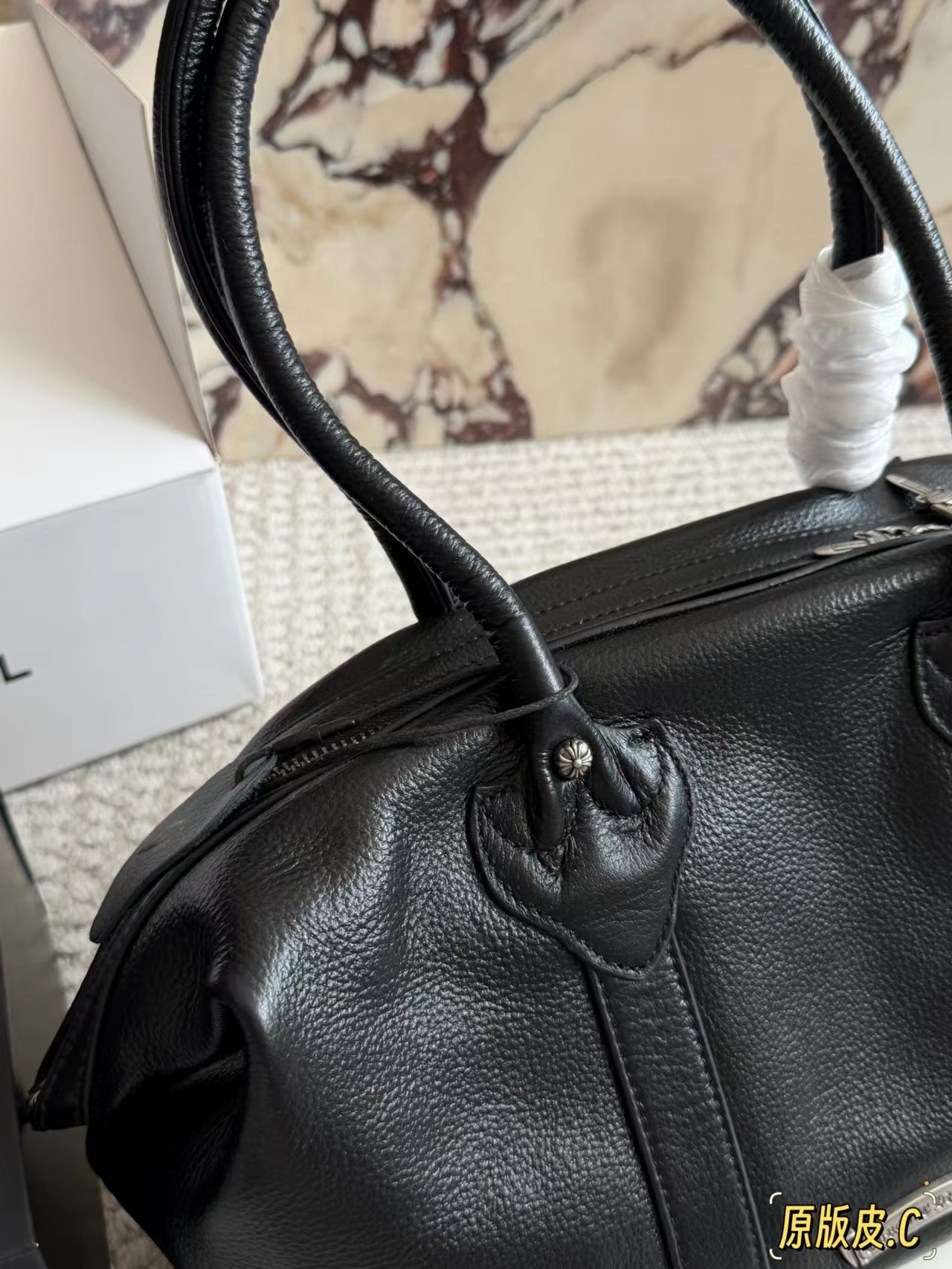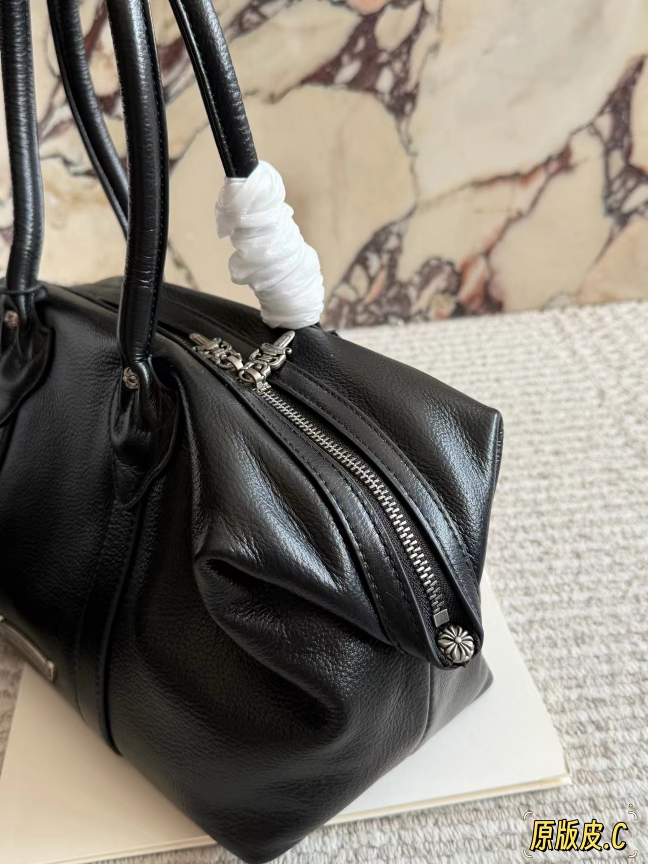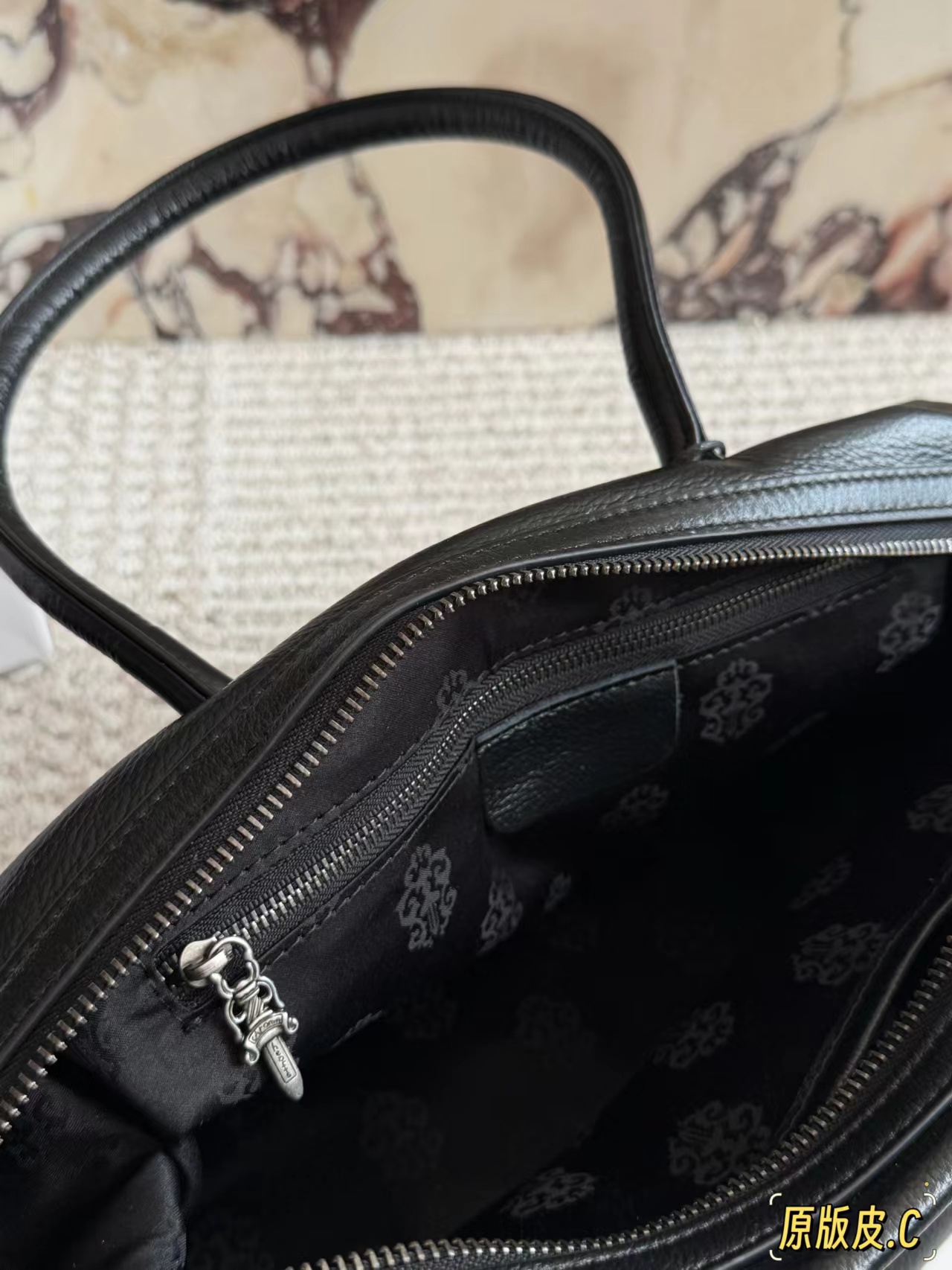 饺子包,黑色荔枝纹牛皮,手感软糯耐磨,超适合日常通勤or休闲出街!正面十字架金属装饰,低调又有辨识度。波士顿包型,容量大,手机、充电宝、化妆品都能装,短途出行也OK!手提复古感满满,搭配卫衣or西装都超有型,实用又时髦,是秋冬百搭神器