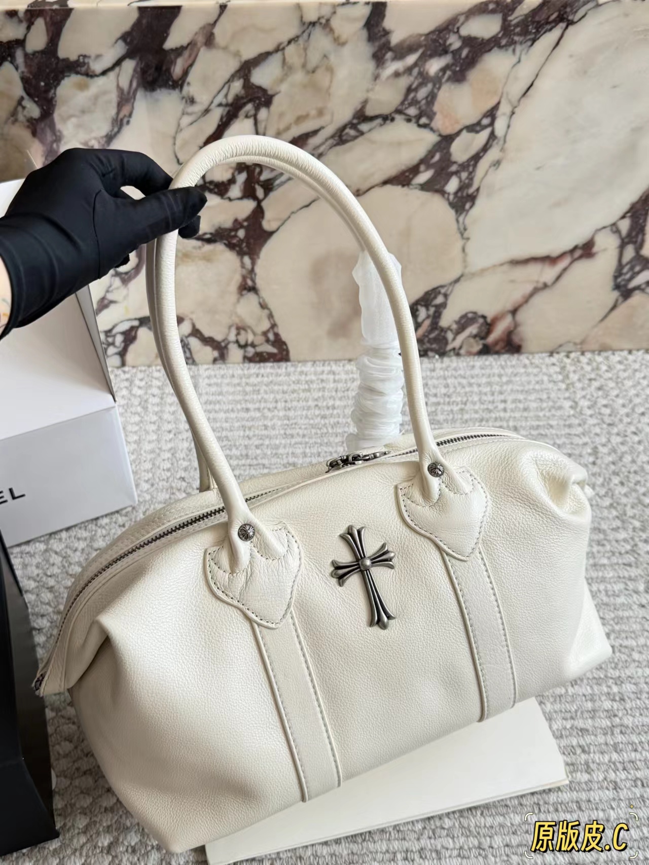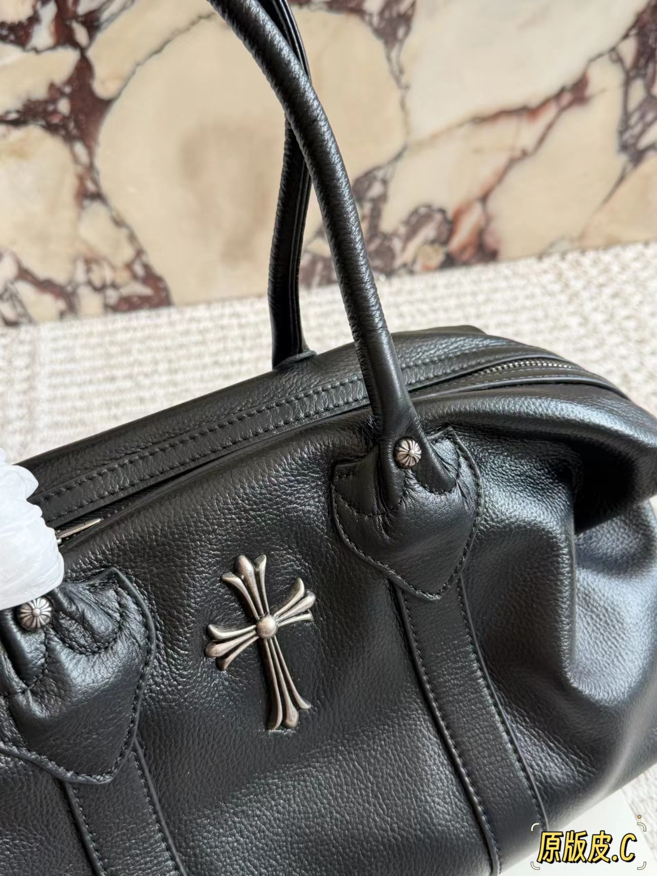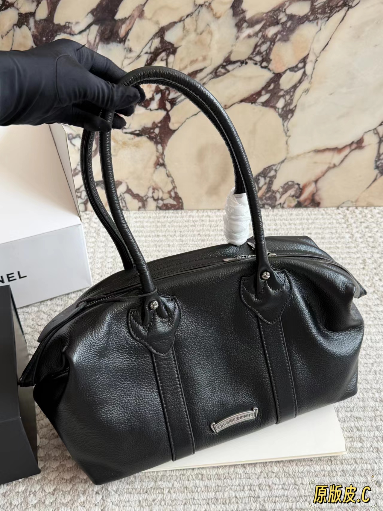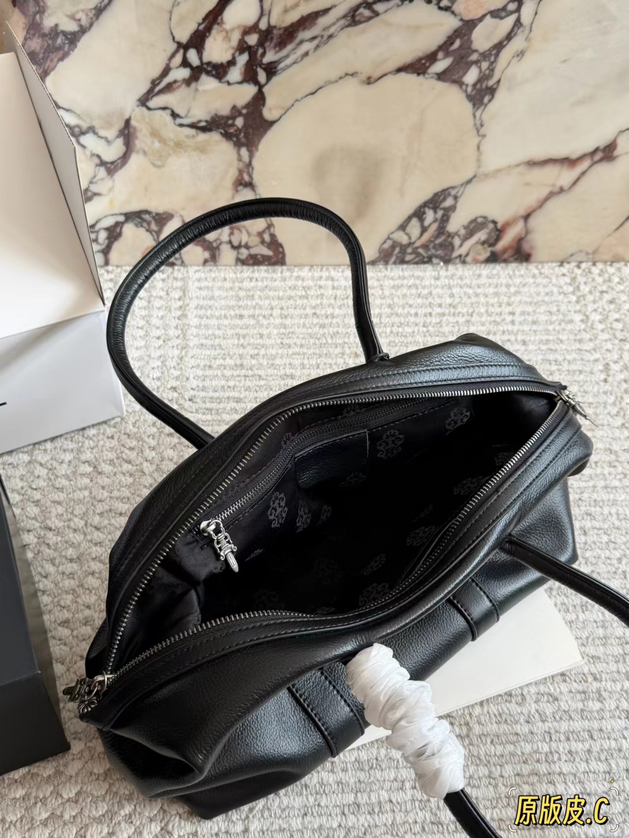 饺子包,黑色荔枝纹牛皮,手感软糯耐磨,超适合日常通勤or休闲出街!正面十字架金属装饰,低调又有辨识度。波士顿包型,容量大,手机、充电宝、化妆品都能装,短途出行也OK!手提复古感满满,搭配卫衣or西装都超有型,实用又时髦,是秋冬百搭神器