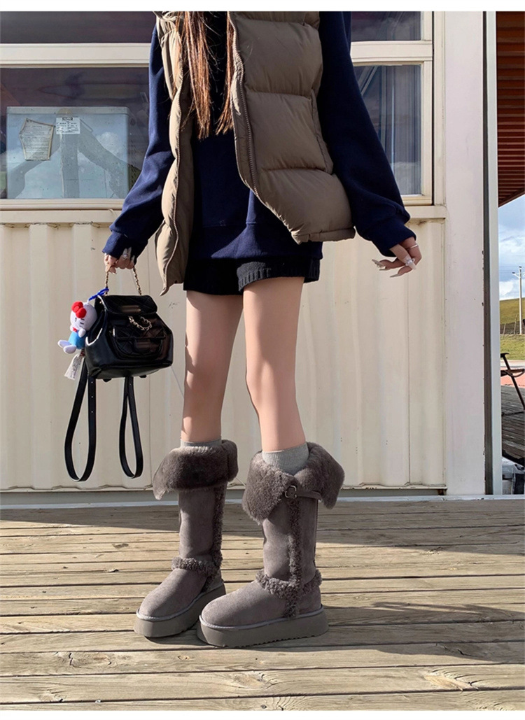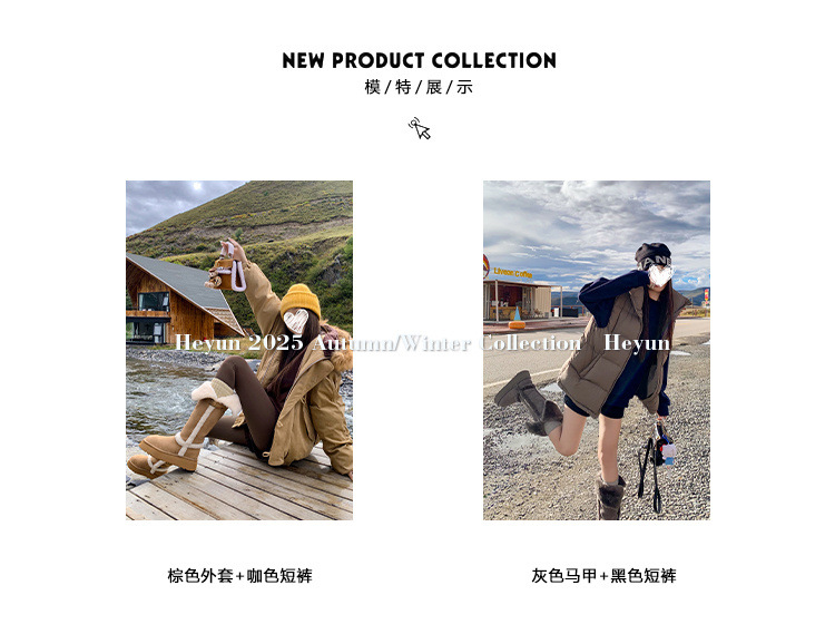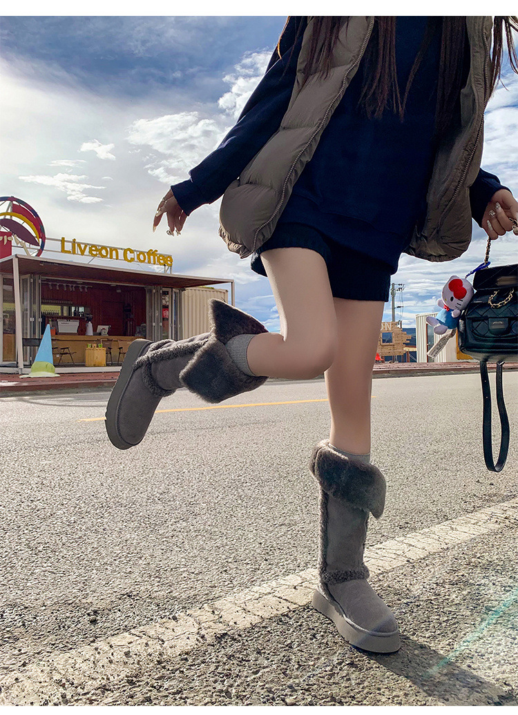 【一鞋两穿❗️毛绒中筒靴大棉鞋】4cm的跟高穿上秒变大长腿,柔软舒适内里,精选绒面面料,防滑EVA发泡底,新款冬季厚底增高加绒保暖一脚蹬雪地靴QQ