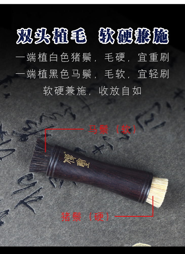 金石印坊 传玺牌细腰双头拓款刷 檀木手柄马鬃+猪鬃