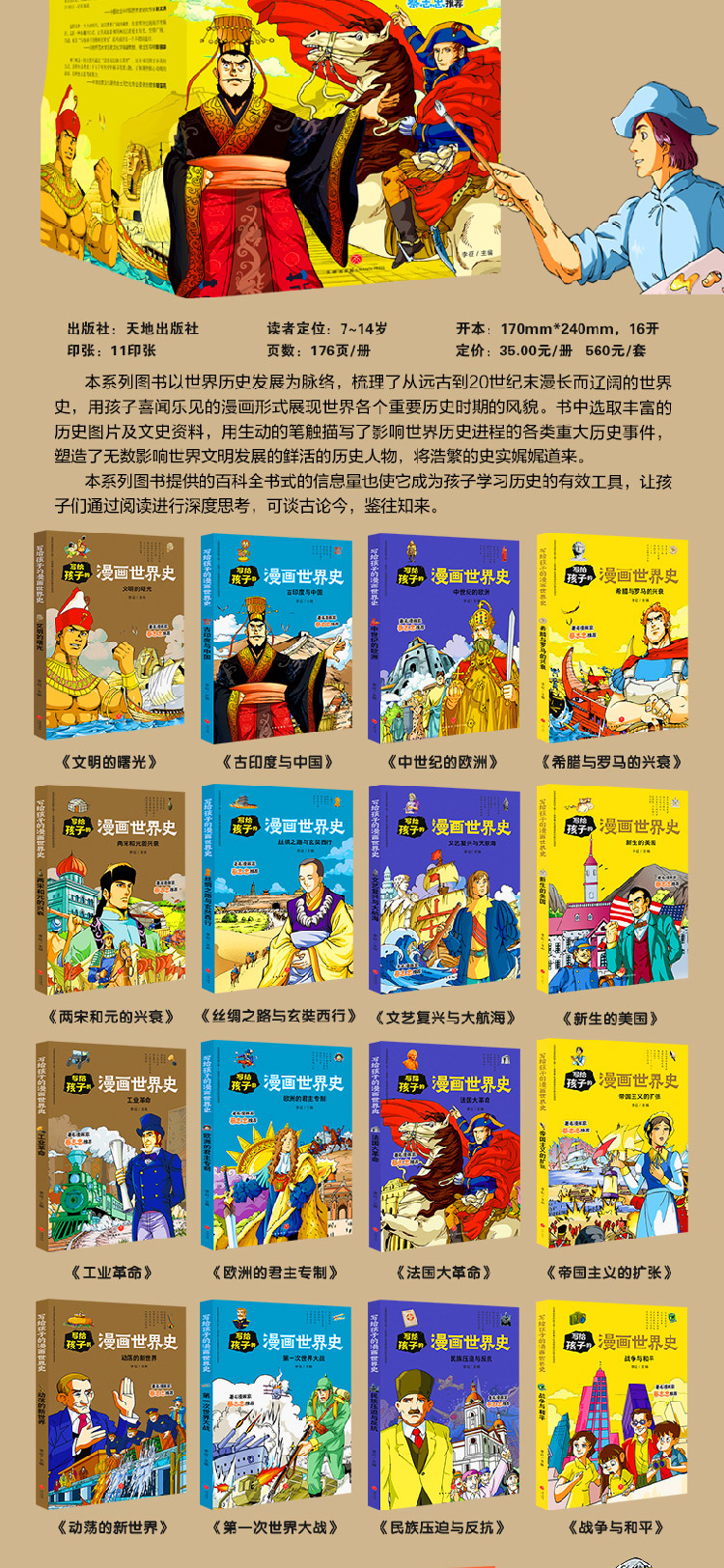 “写给孩子的漫画世界史”系列共16册,是经*******历史研究所专家严格审订,由专业团队为孩子创作的世界历史全彩漫画书。