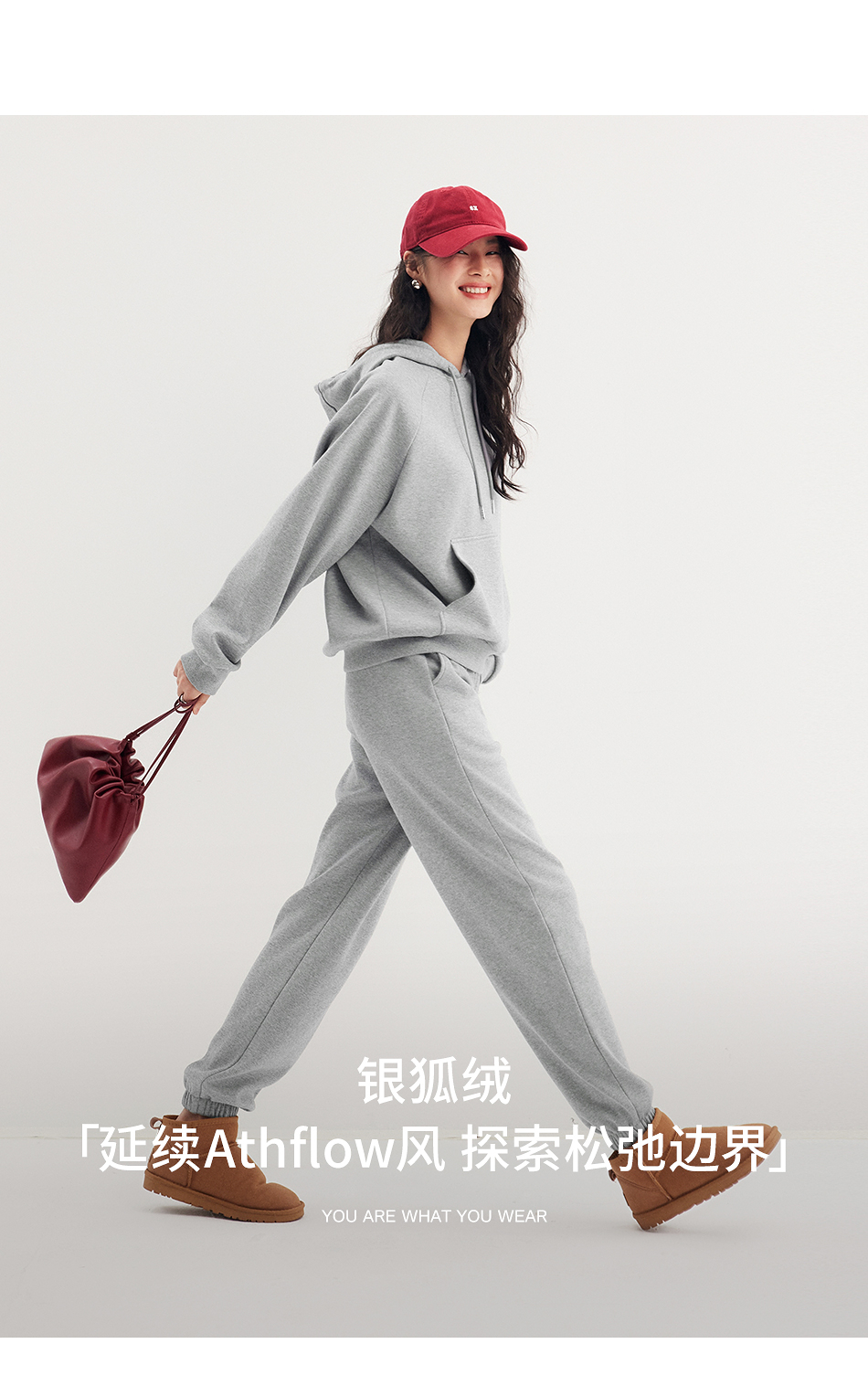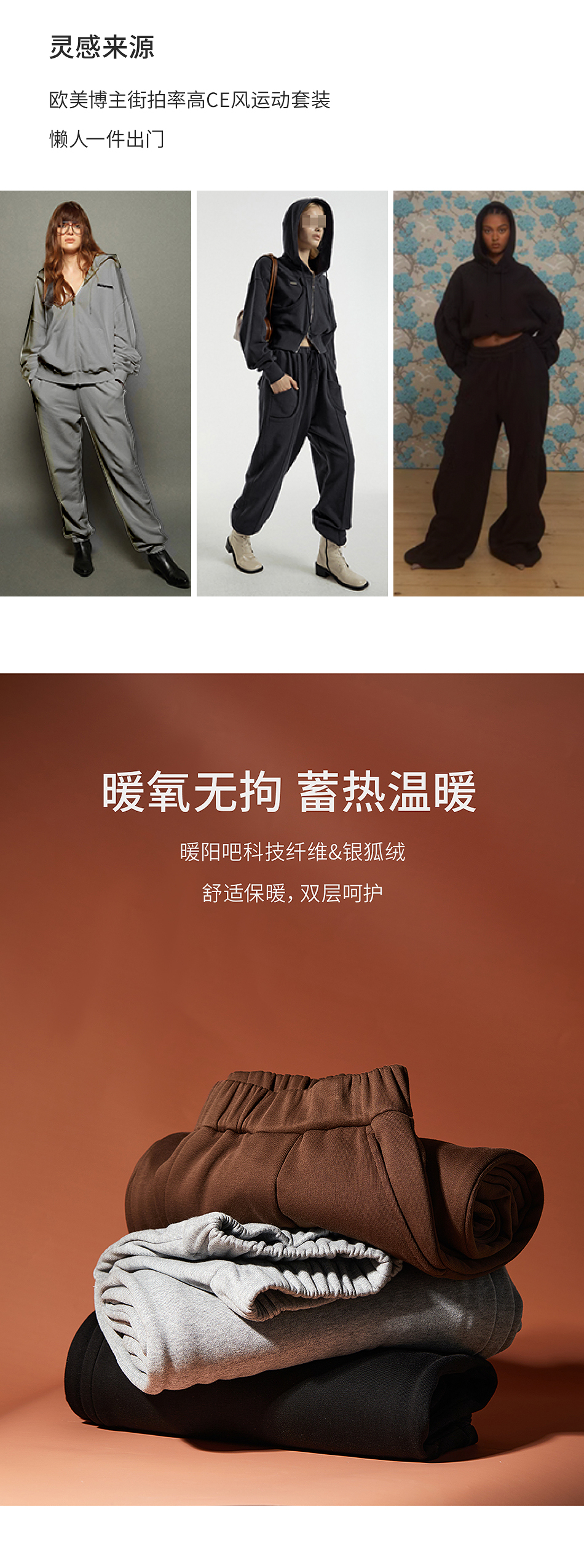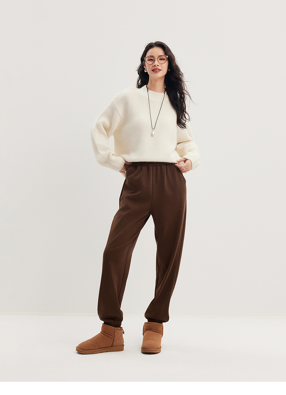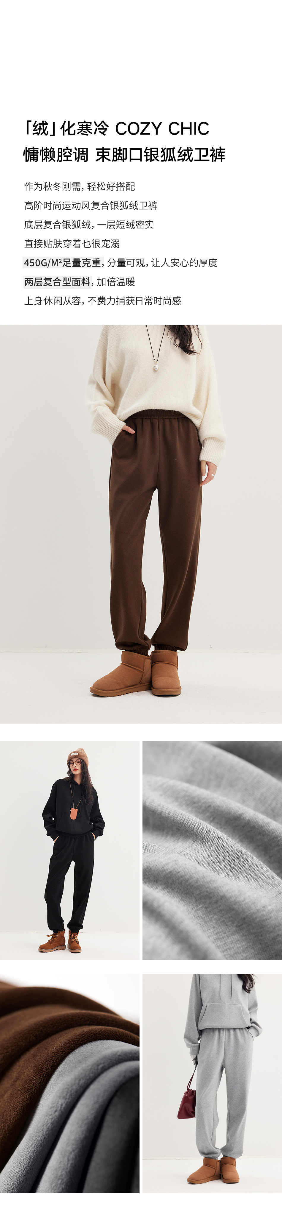 棉仓357681002-银狐绒厚暖美式高腰宽松束脚口加绒卫裤