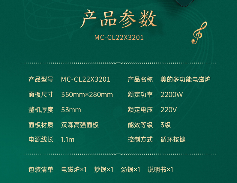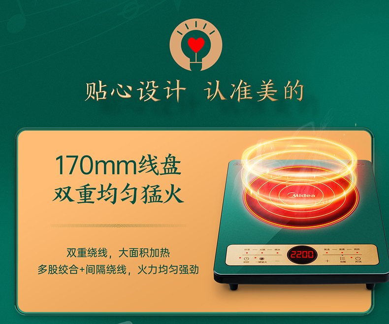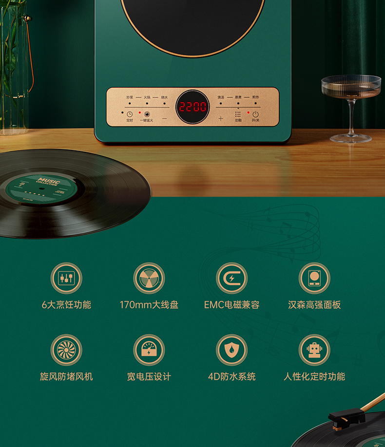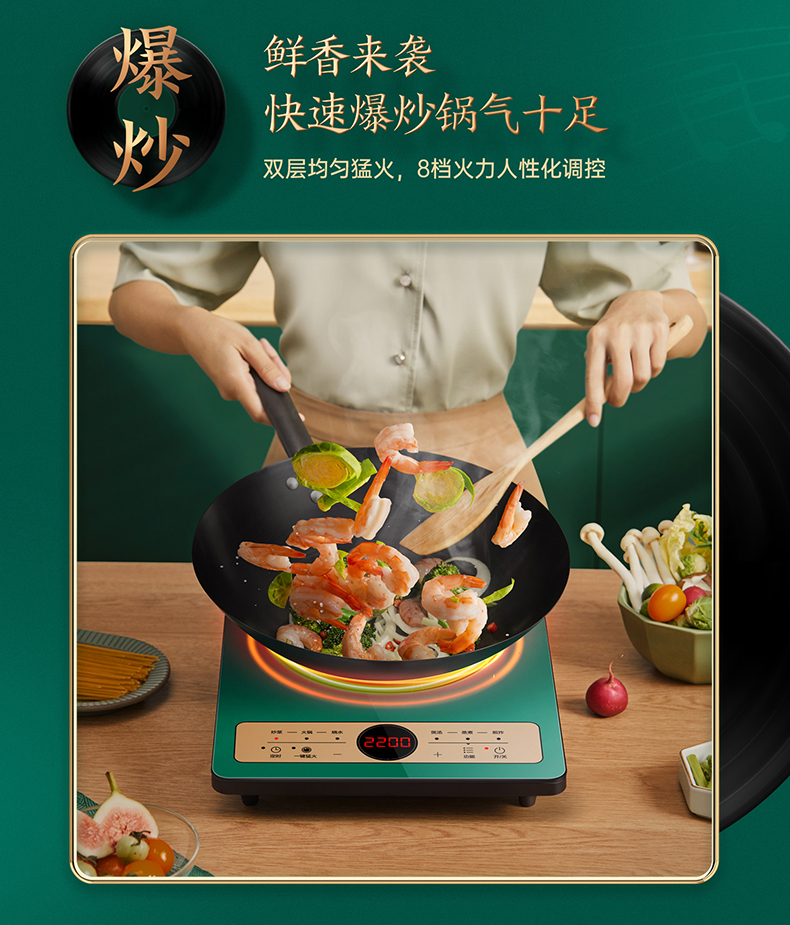 Midea/美的 MC-CL22X3201家用炒菜电磁炉多功能智能 复古绿