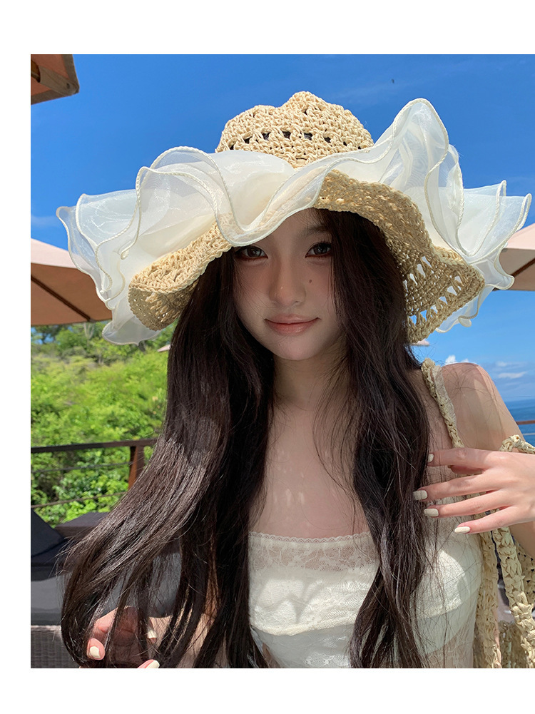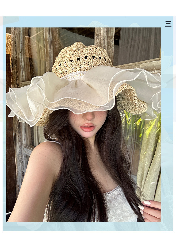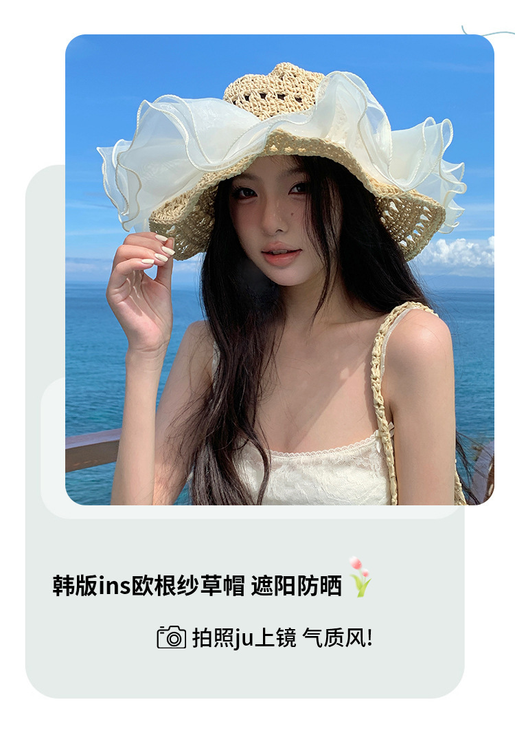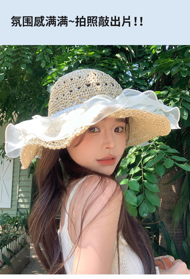 【超美❗️大帽檐防晒蕾丝草帽】巨百搭,显脸小,显气质,夏季女海边全脸沙滩透气太阳渔夫帽防晒帽遮阳帽子堪比雨伞防晒霜