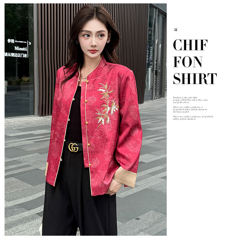 QYM 5951-Y时尚国风外套刺绣花宽松休闲中式休闲 商品图0