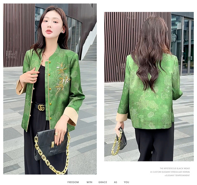 QYM 5951-Y时尚国风外套刺绣花宽松休闲中式休闲