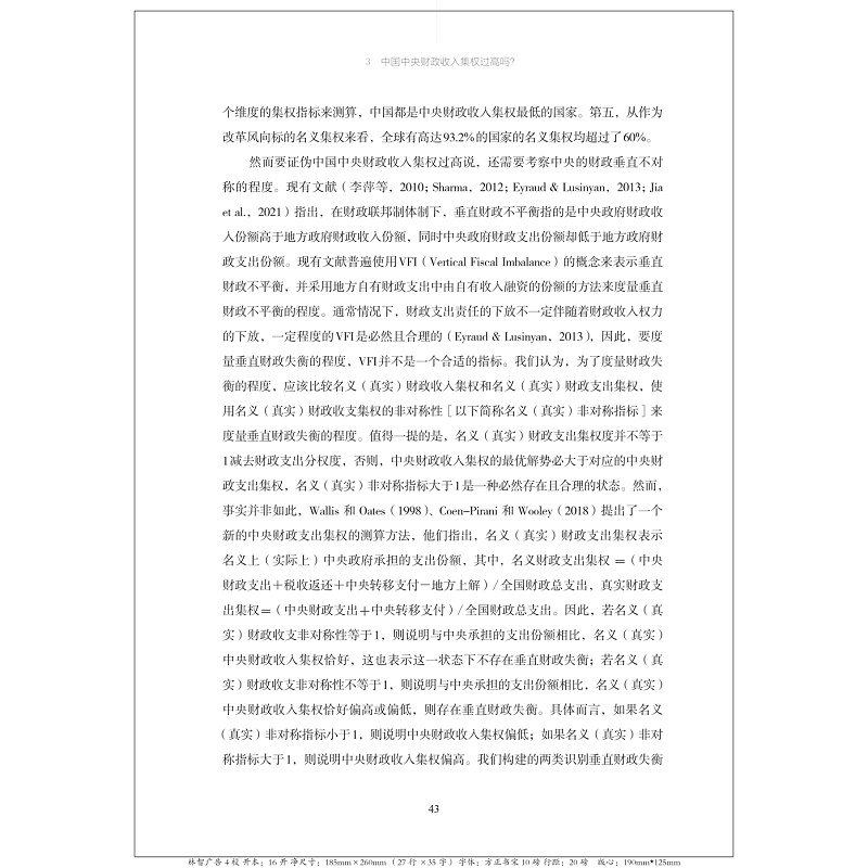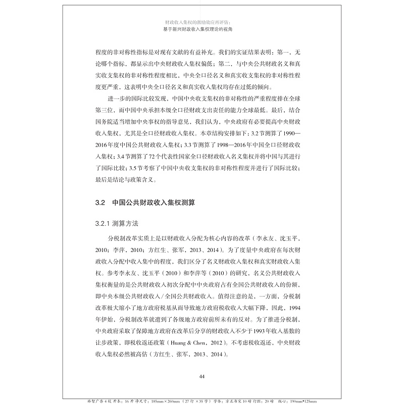 (2)理论创新突出。本著作改进了新财政收入集权理论,提出了一个以财政收入集权与转移支付为双内核的旨在解释中国地方政府行为及其后果(包括非预算内收入与预算内收入之比、中国税收chaoGDP增长、企业税负、地方政府支出结构、县域经济增长)的新兴财政收入集权理论。
