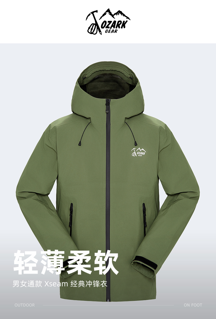 OZARK奥索卡户外23男女秋通款Xseam防风防泼水单层冲锋衣1312160