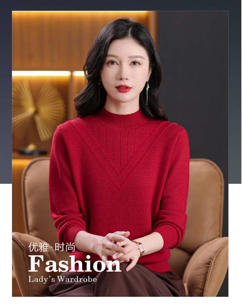 CC-101-8980秋冬新款半高领加绒厚款毛衣针织打底衫休闲通勤时髦上衣