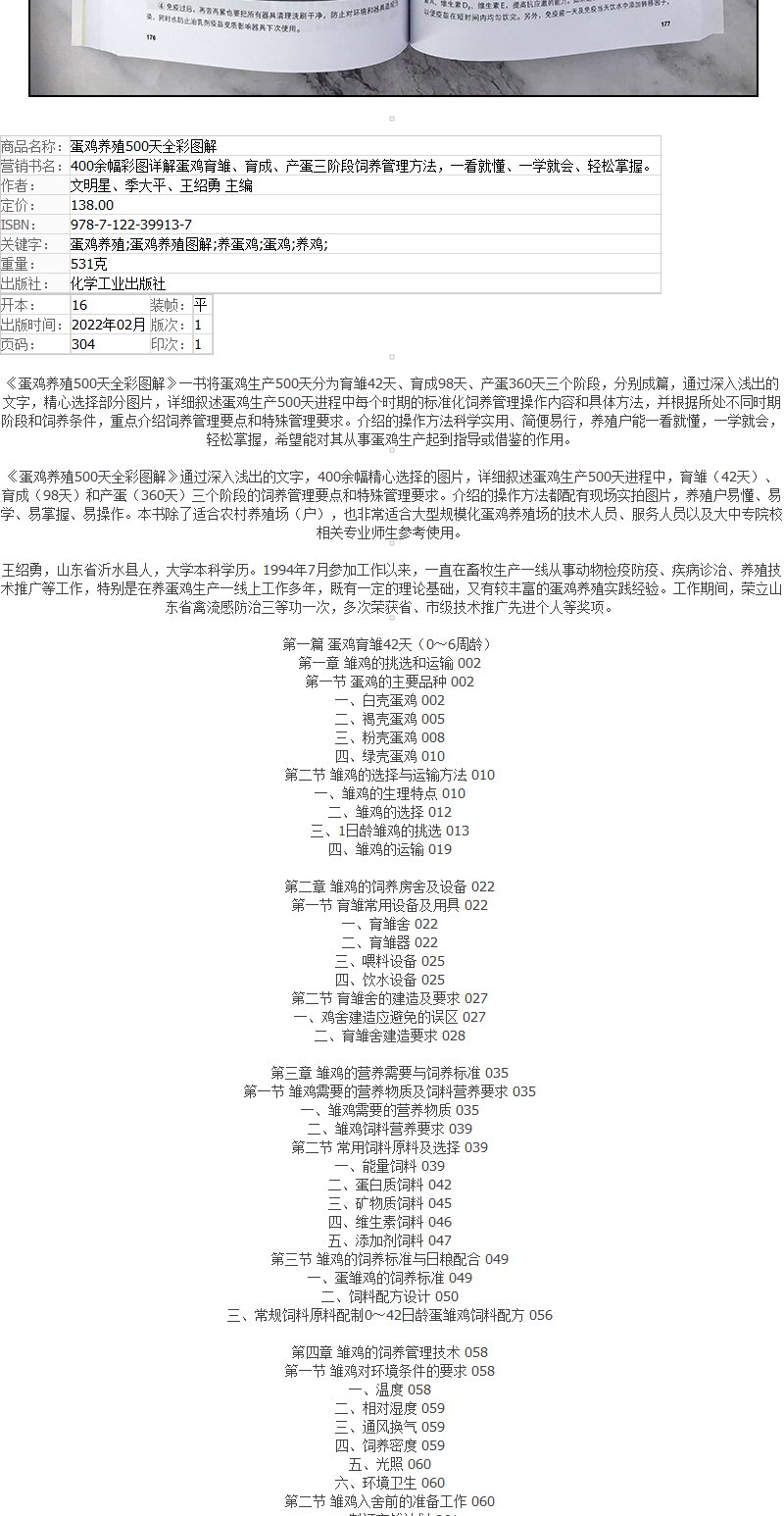蛋鸡养殖500天全彩图解 蛋鸡养殖书籍 蛋鸡养殖一本通 零基础学养鸡 蛋鸡养殖知识 图详解蛋鸡育雏育成产蛋三阶段饲养管理方法书籍 无 化学工业出版社 9787122399137