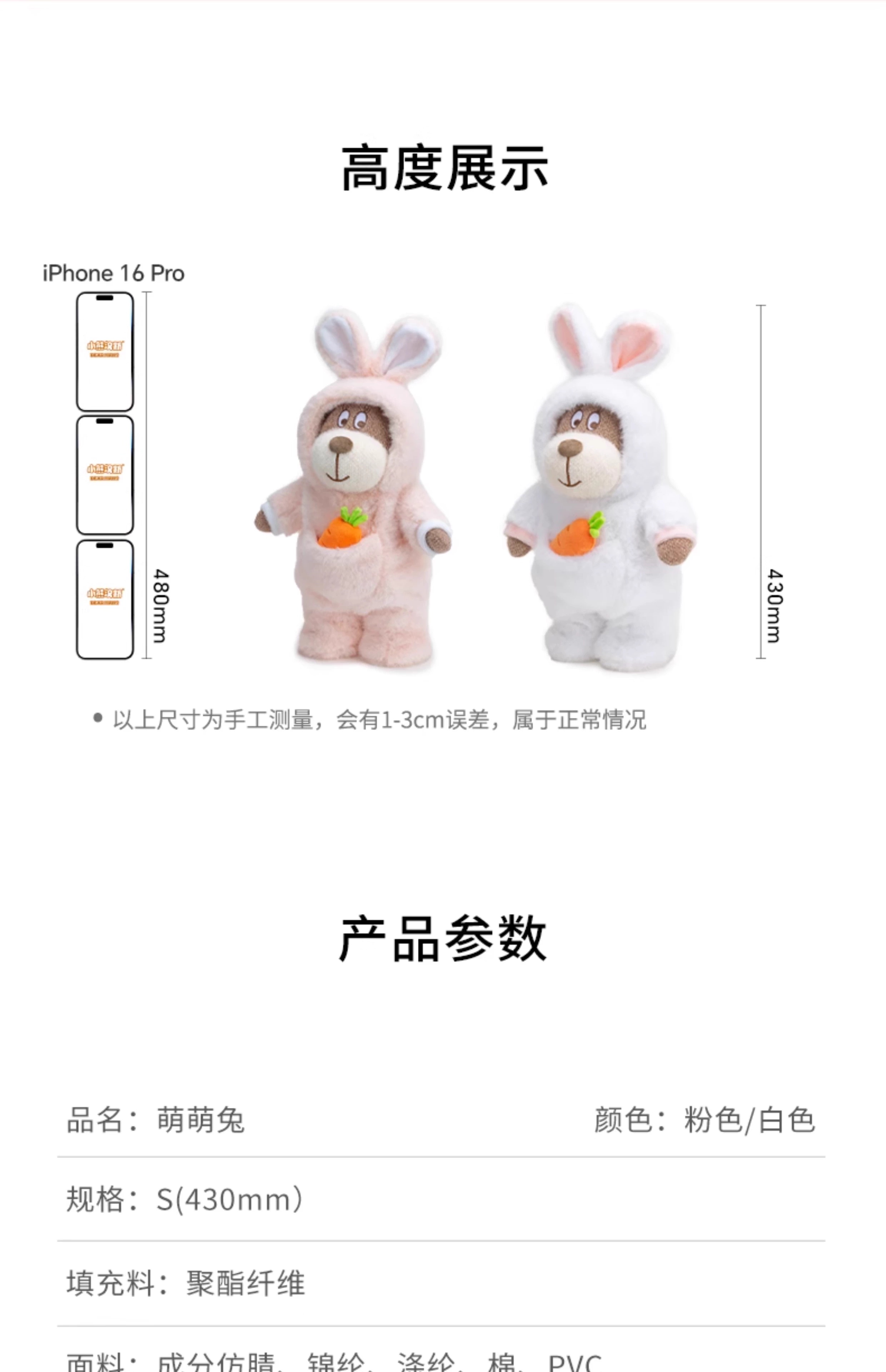 小熊汉斯萌萌兔黛丝--(站立白色)