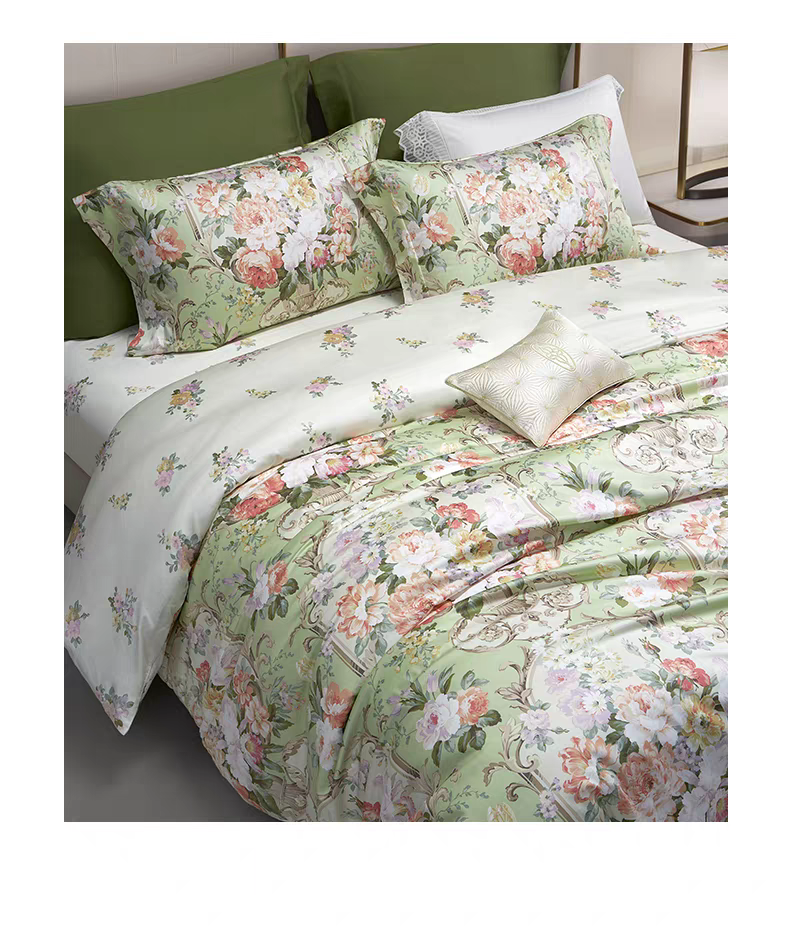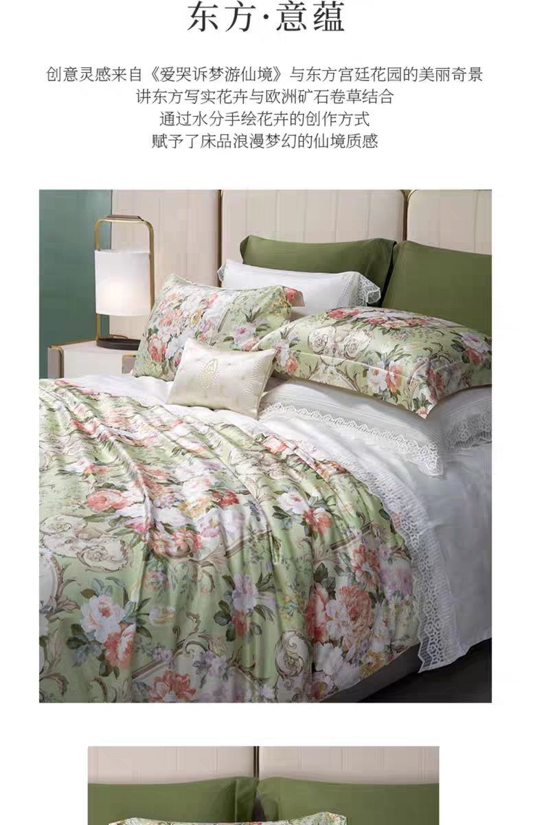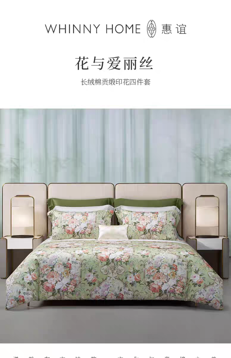 whinny/惠谊新中式精致婉约全棉长绒棉贡缎印花四件套花与爱丽丝