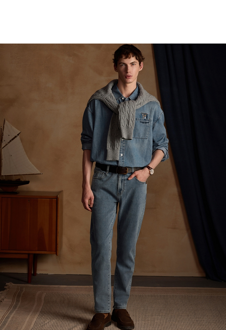 【大都会】AARON CHANG联名 TeenieWeenie小熊男装牛仔衬衫2024秋季新款 已售 0