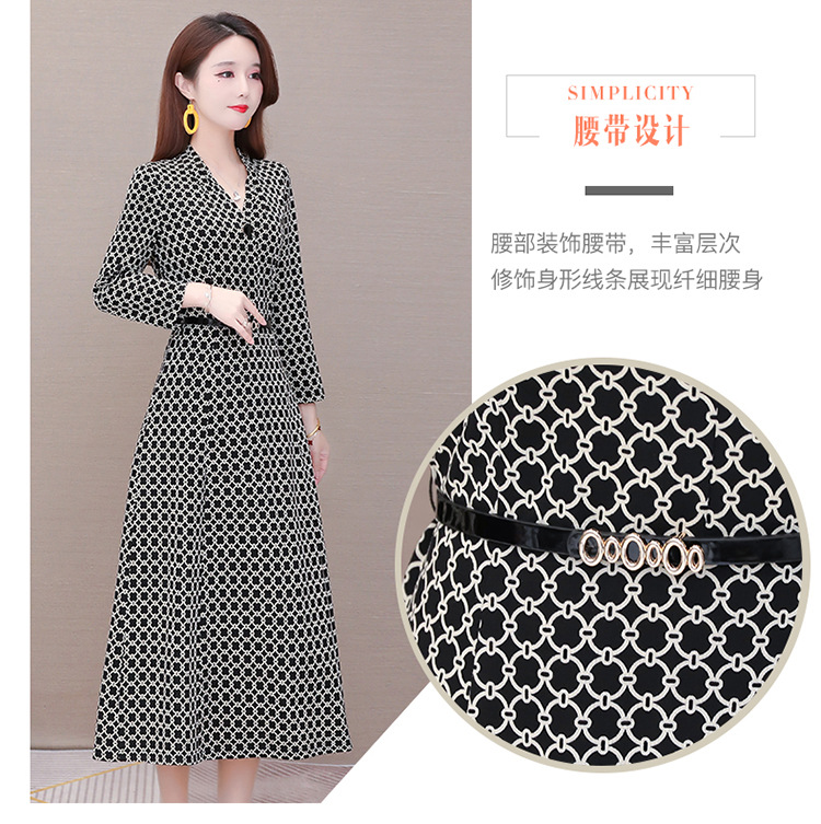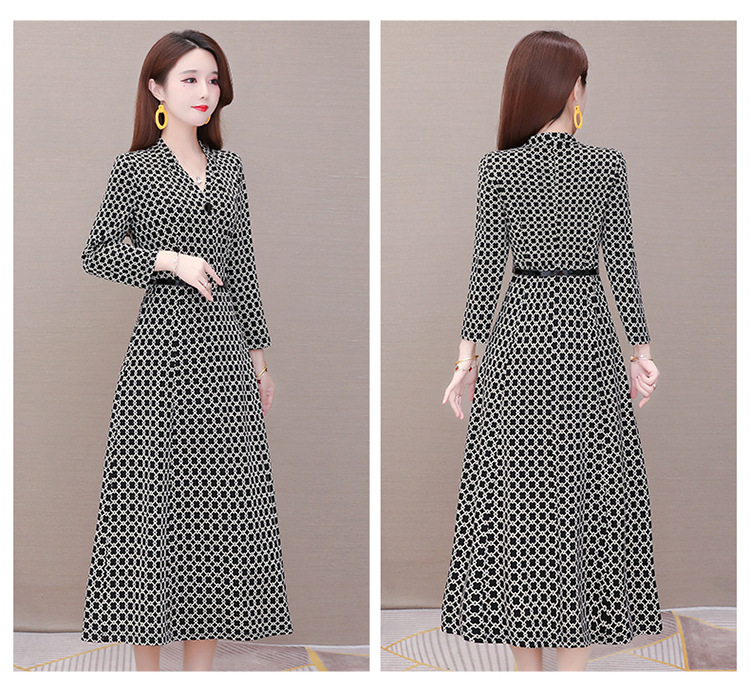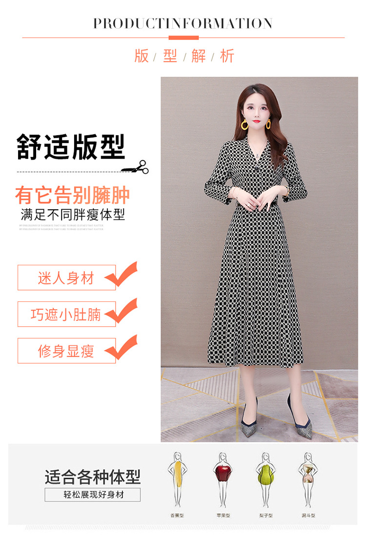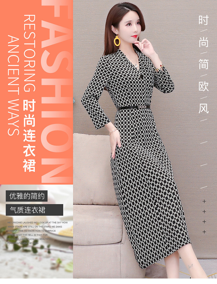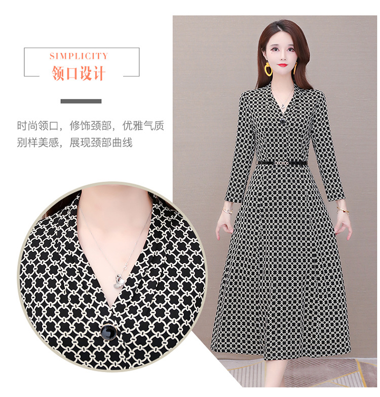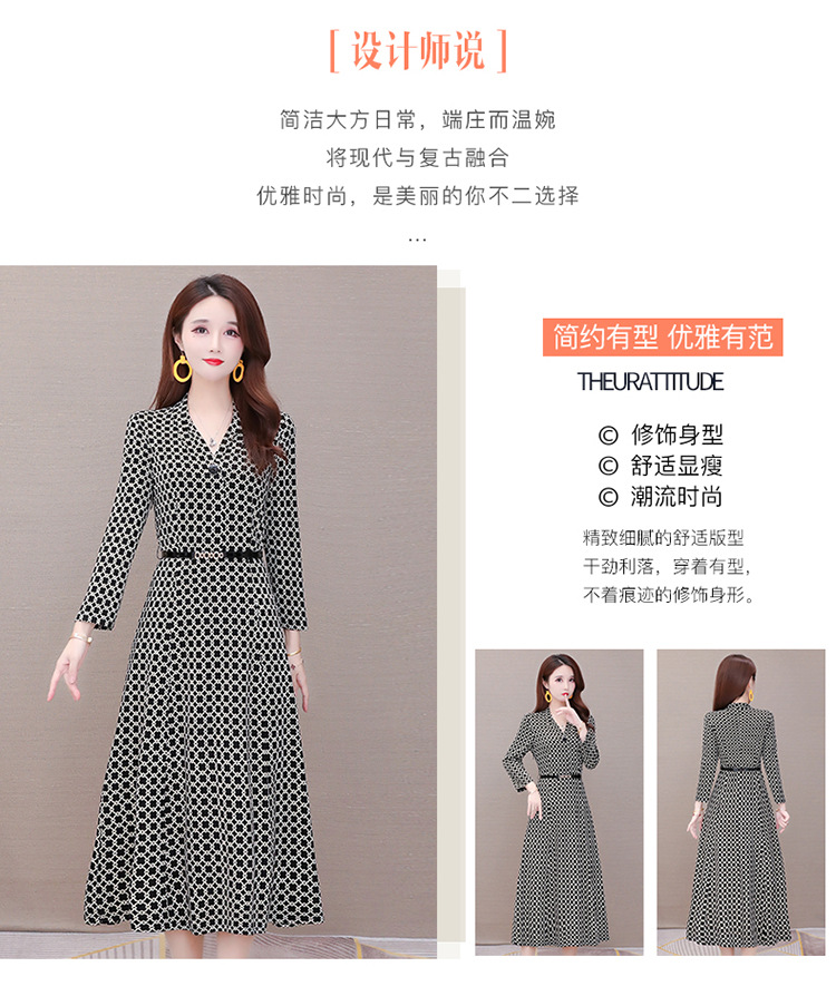 YWE-HSY-M2C021新款修身气质减龄长袖时尚格子连衣裙