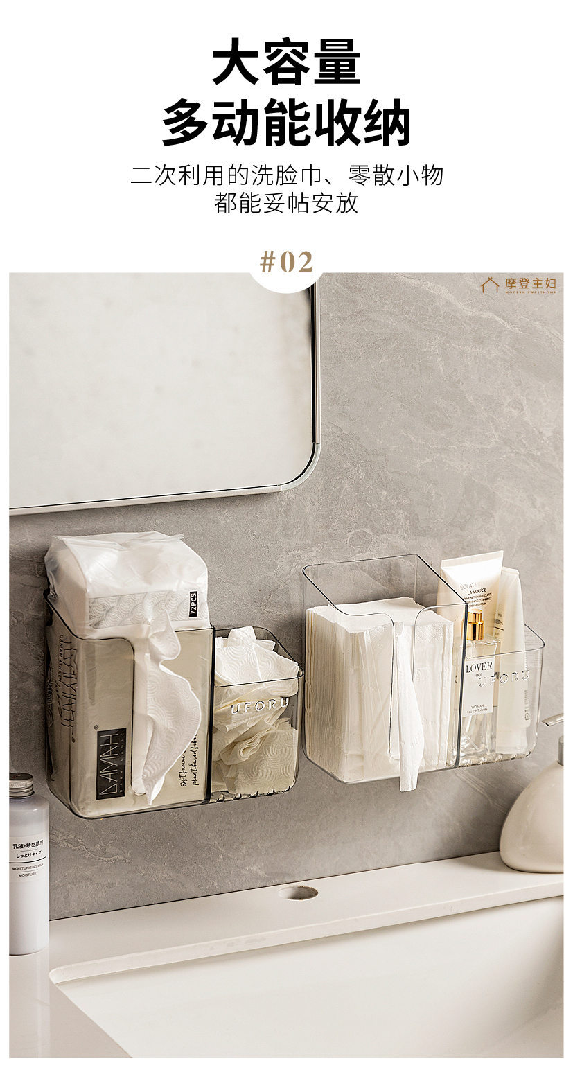 摩登主妇废弃洗脸巾收纳盒卫生间壁挂置物架棉柔巾二次利用纸巾盒
