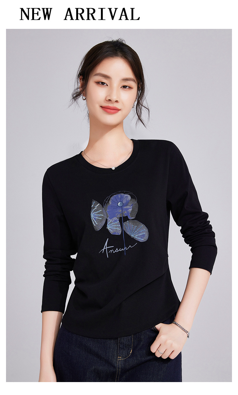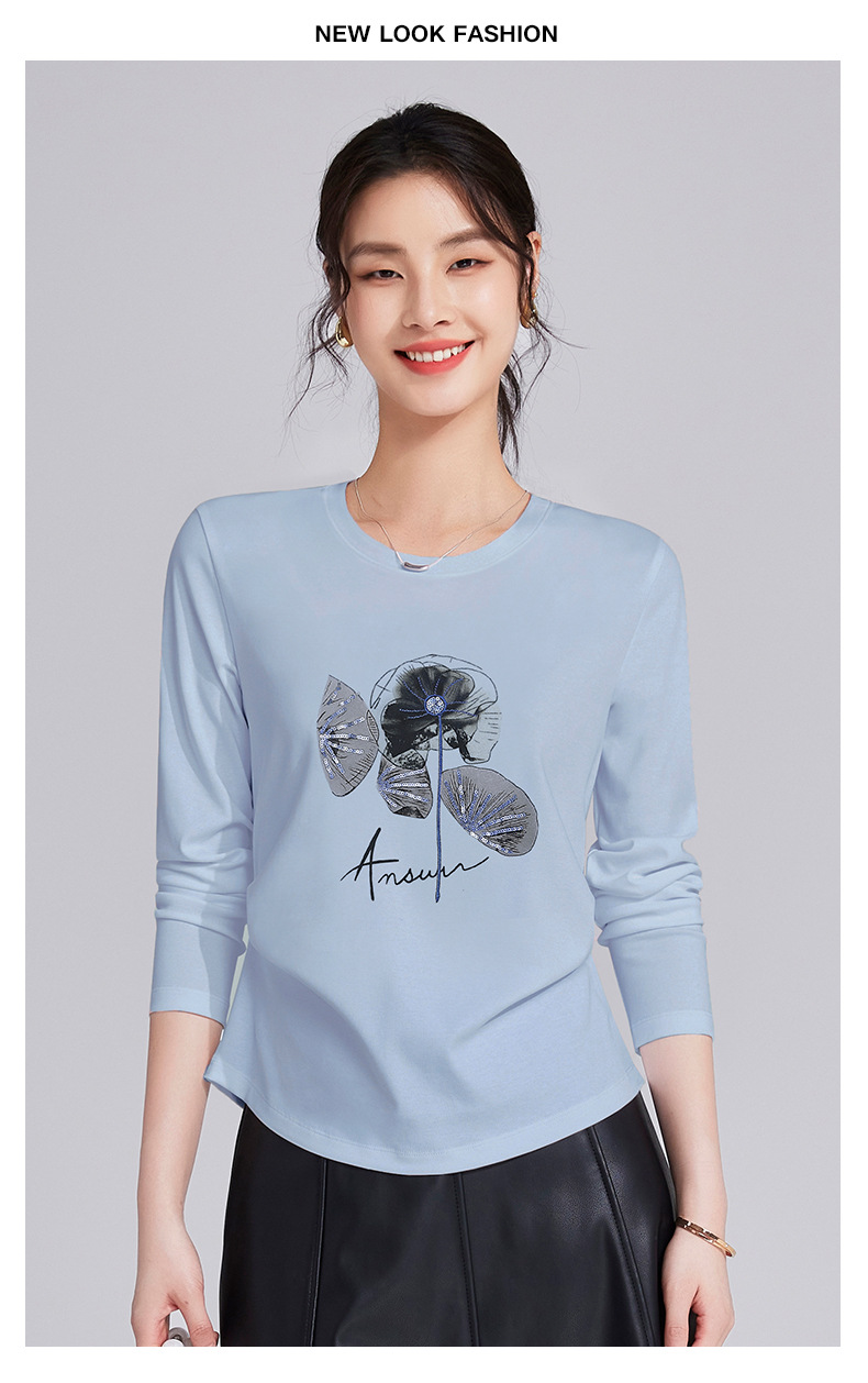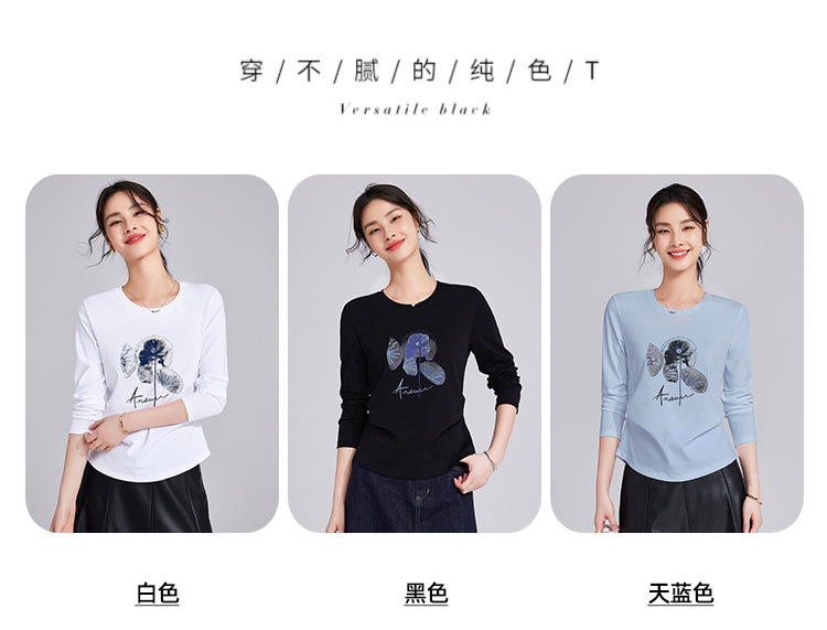 雀说棉长袖t恤女士宽松时尚高级感爆款内搭打底衫上衣ALM926