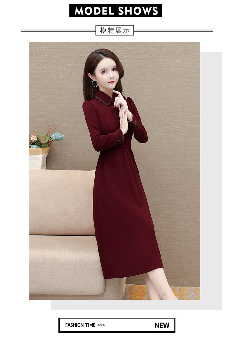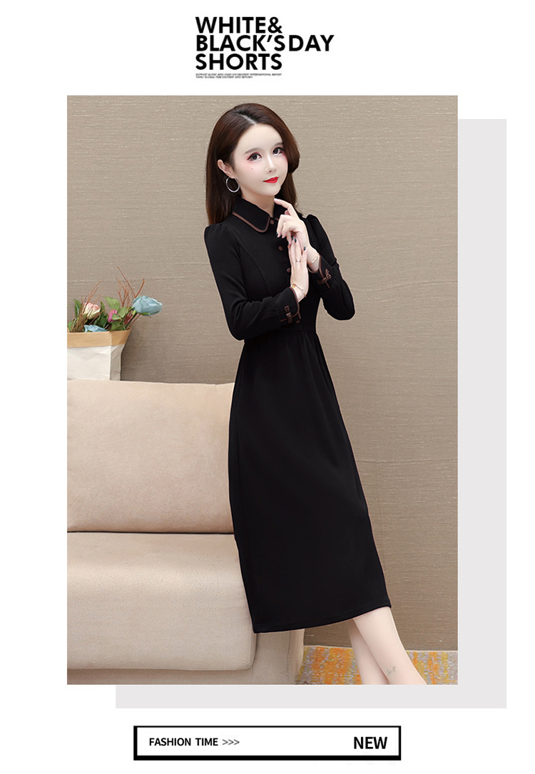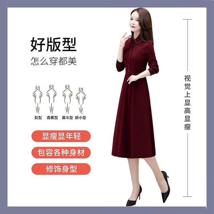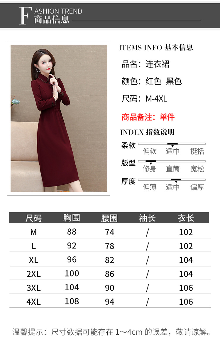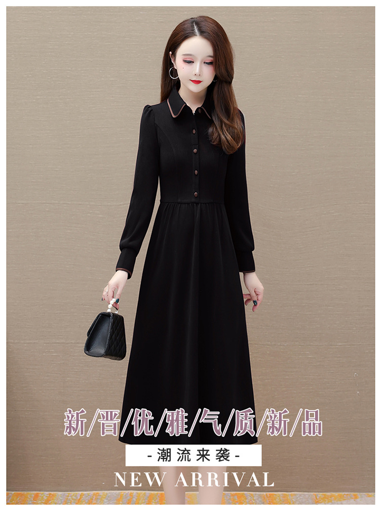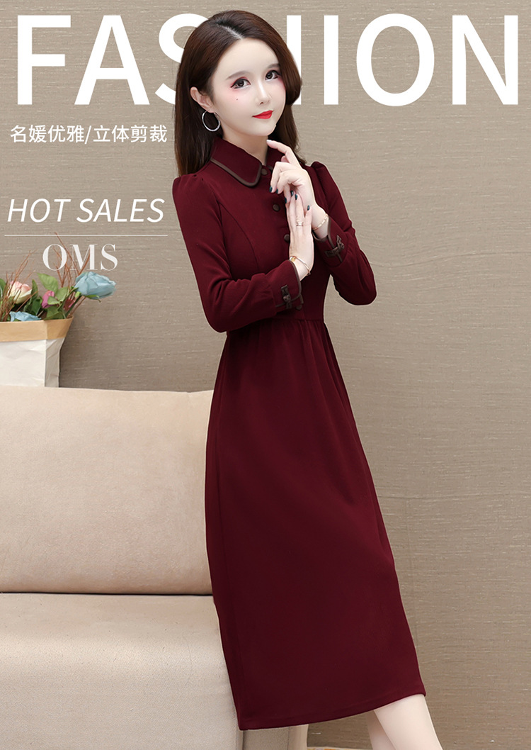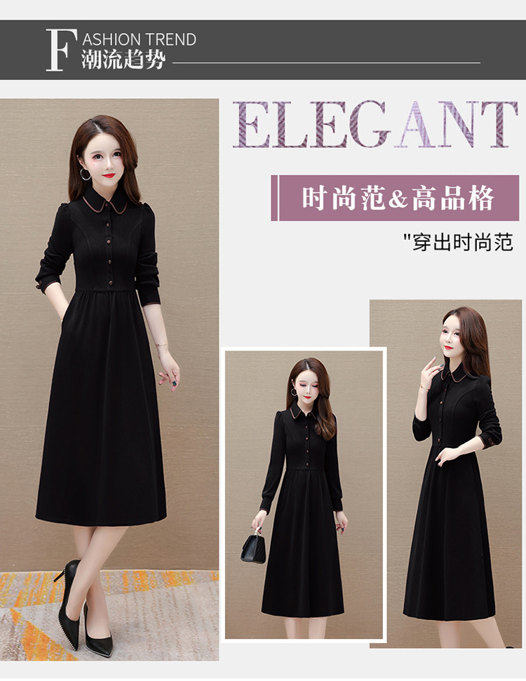 简约修身,秋冬款中长款时尚连衣裙POLO领长袖气质内搭打底裙QYM-OMS-PB3101-L