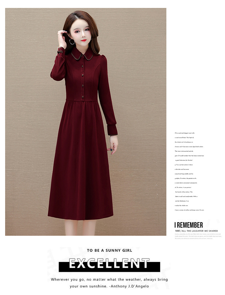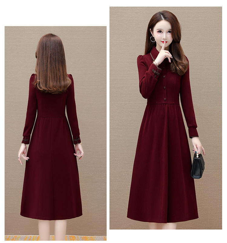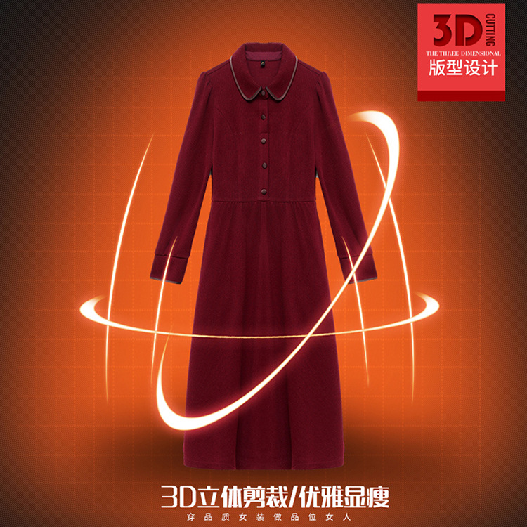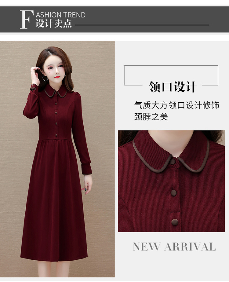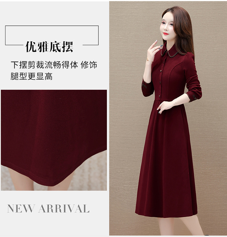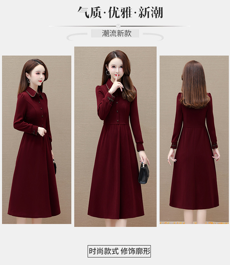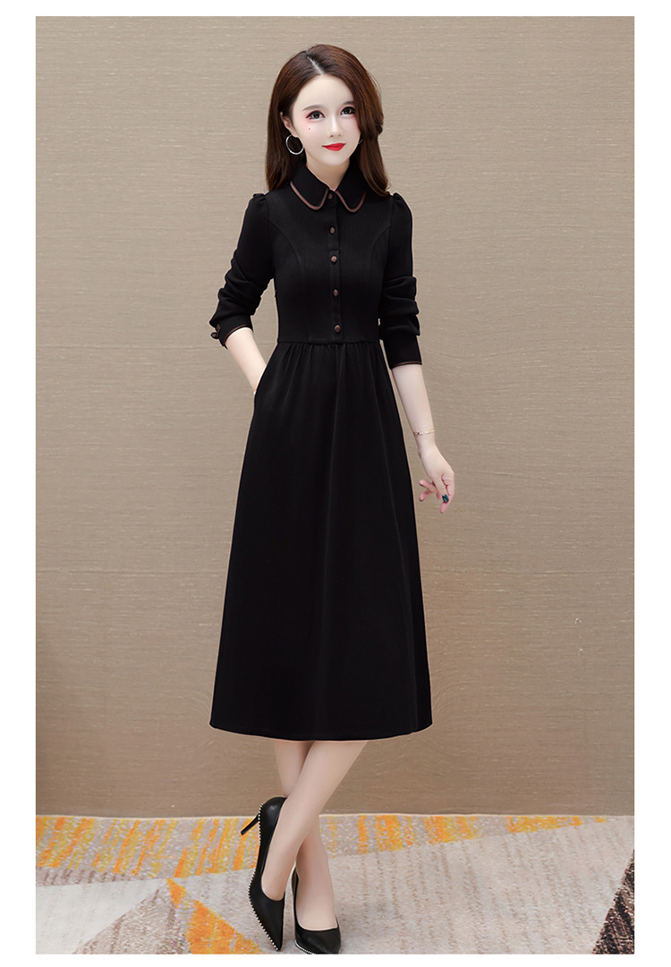 简约修身,秋冬款中长款时尚连衣裙POLO领长袖气质内搭打底裙QYM-OMS-PB3101-L