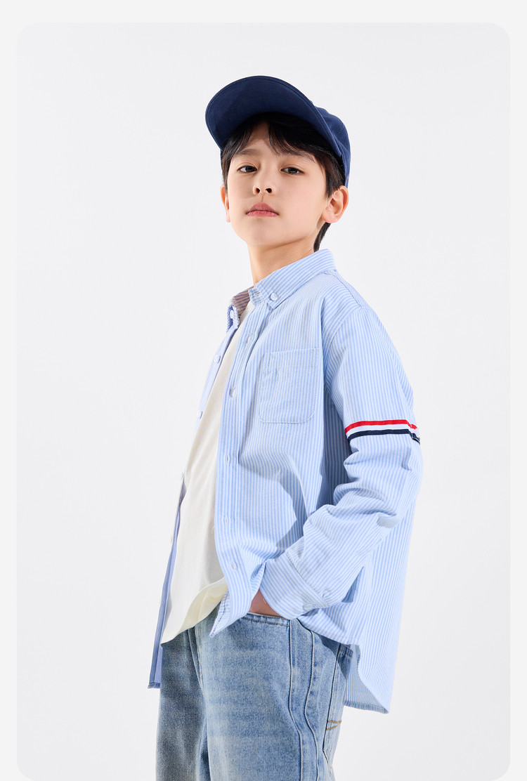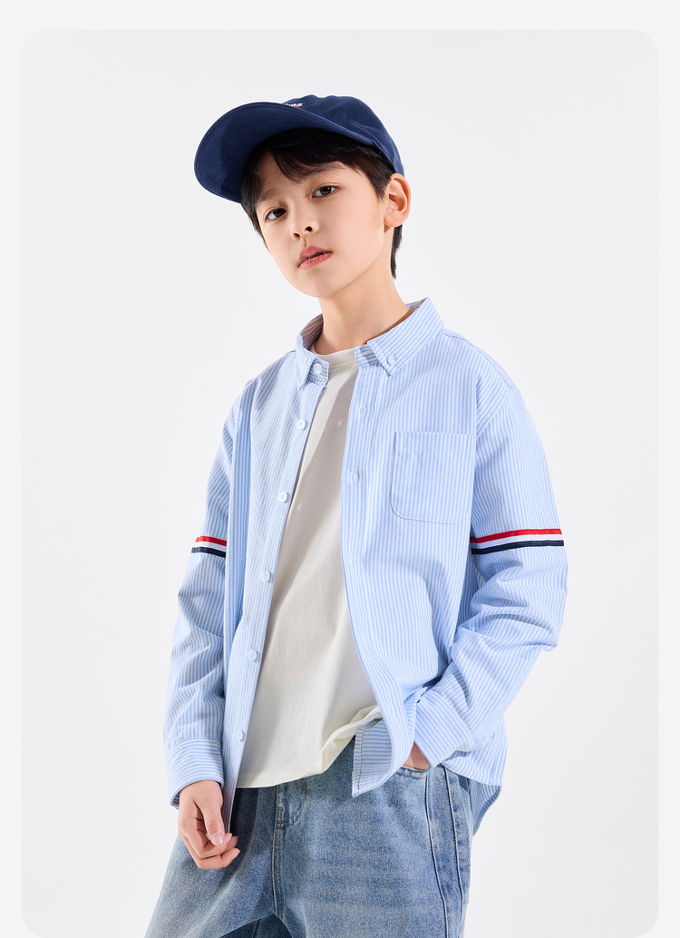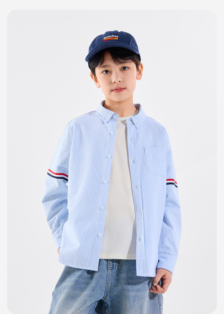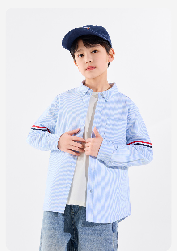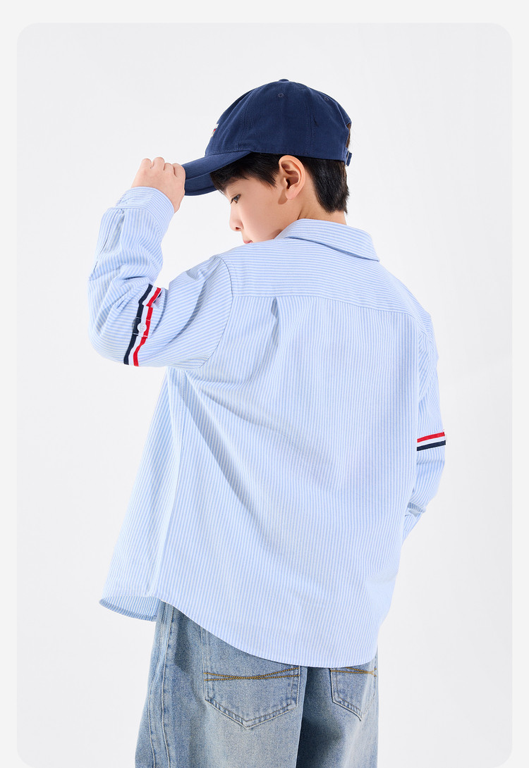【纯棉】男童衬衫儿童上衣条纹春季新款男孩外套大童长袖衬衣Z6ACS046