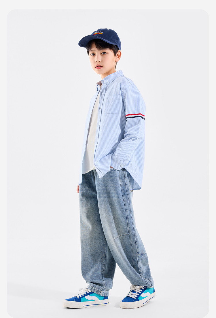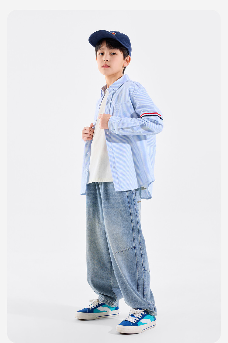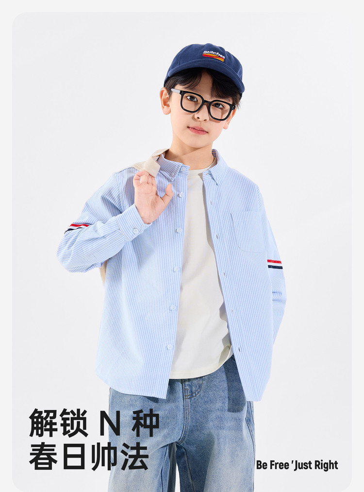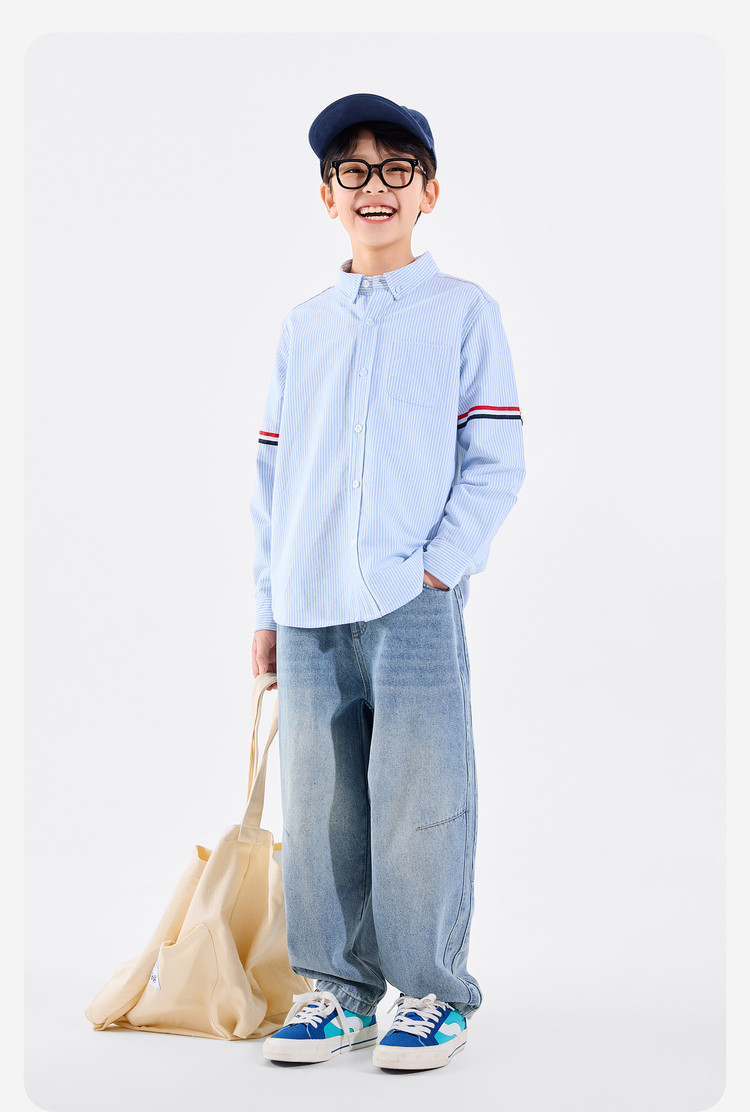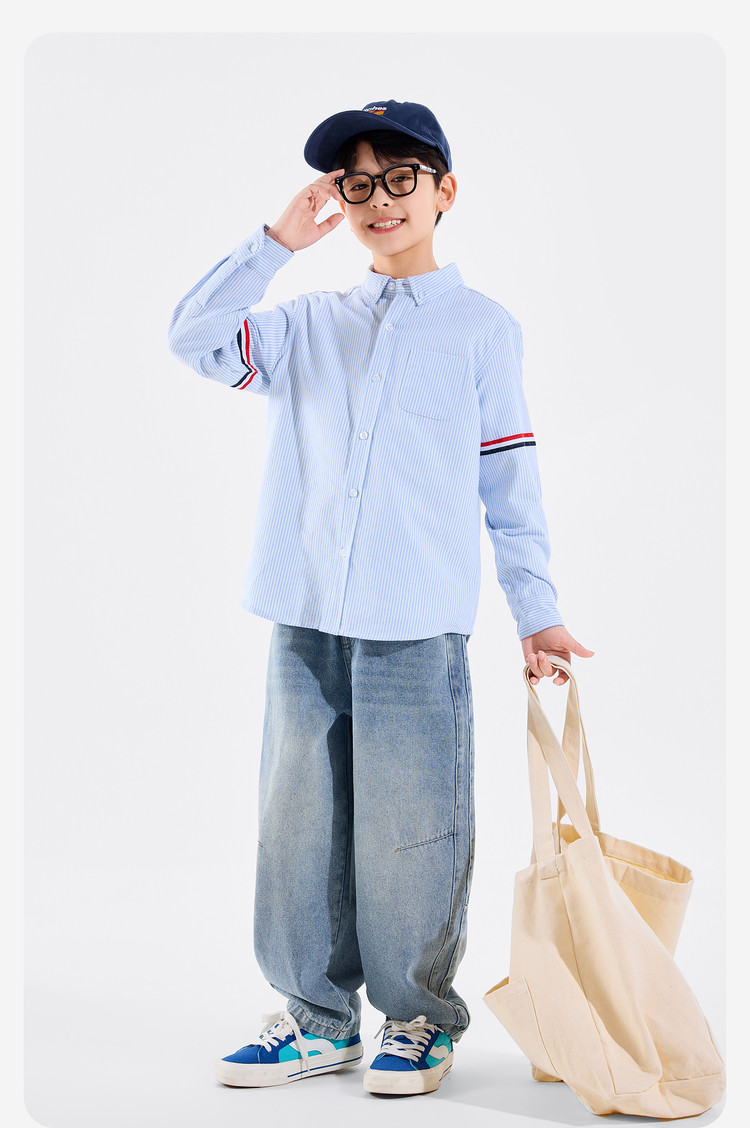 【纯棉】男童衬衫儿童上衣条纹春季新款男孩外套大童长袖衬衣Z6ACS046