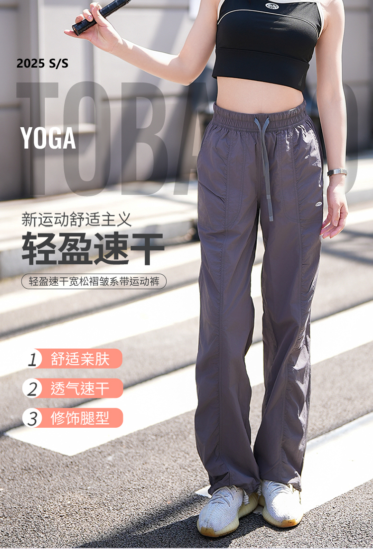 一恋•普拉提 2025春季新款轻盈速干休闲裤宽松褶皱系带运动裤QC3021