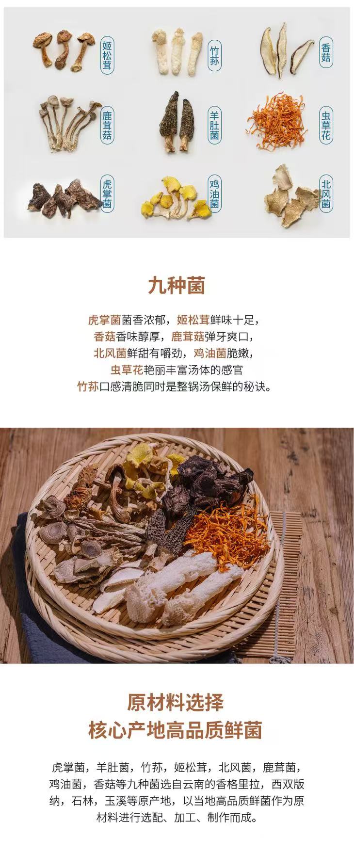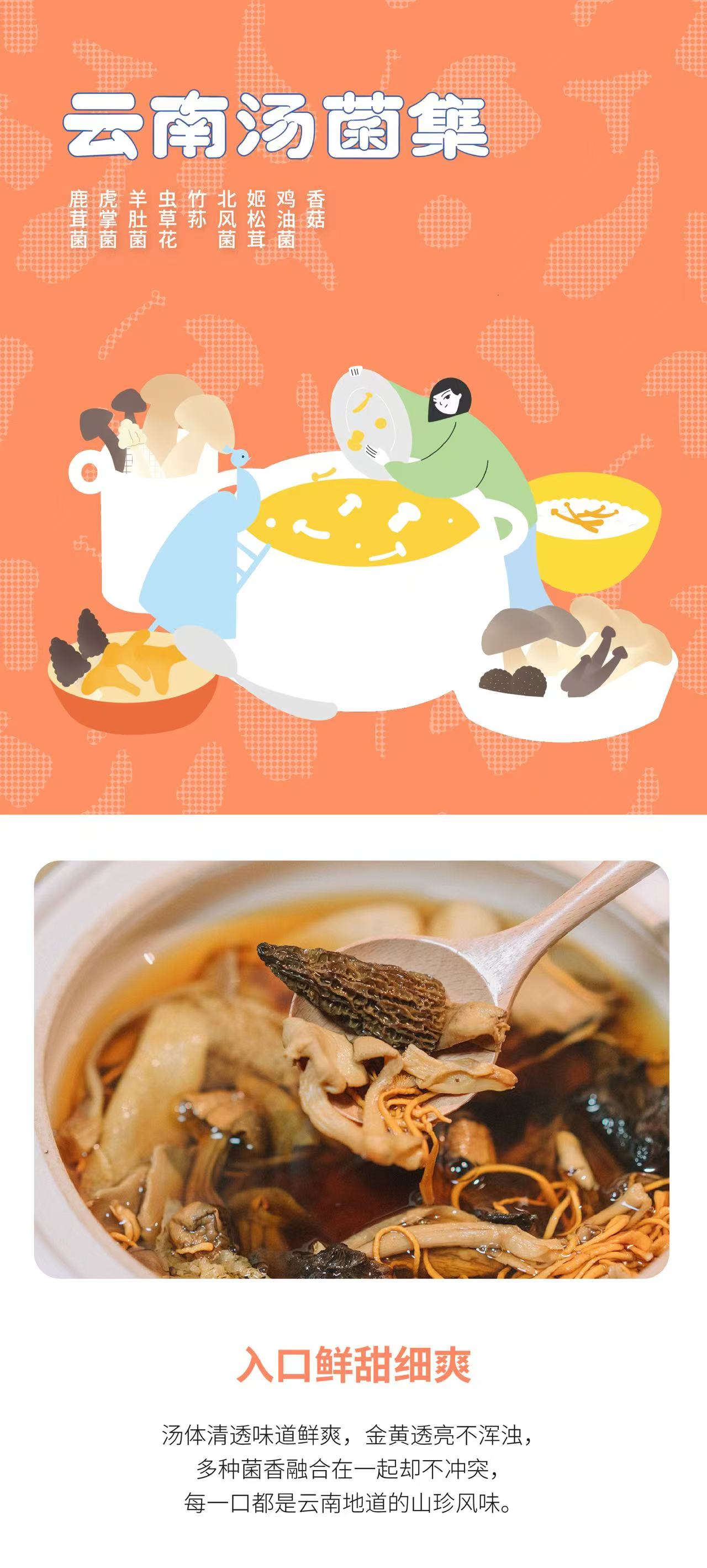 云南菌汤集 虎掌菌+姬松茸+鹿茸菇+北风菌+鸡油菌+羊肚菌+竹荪+虫草花