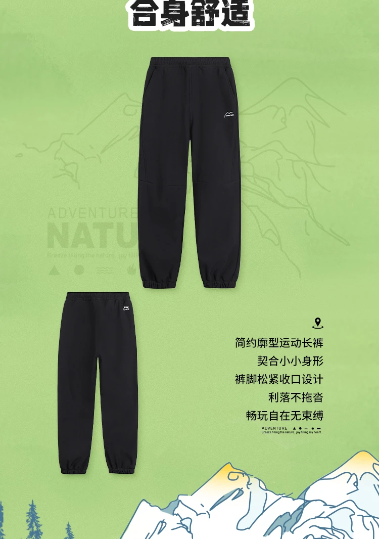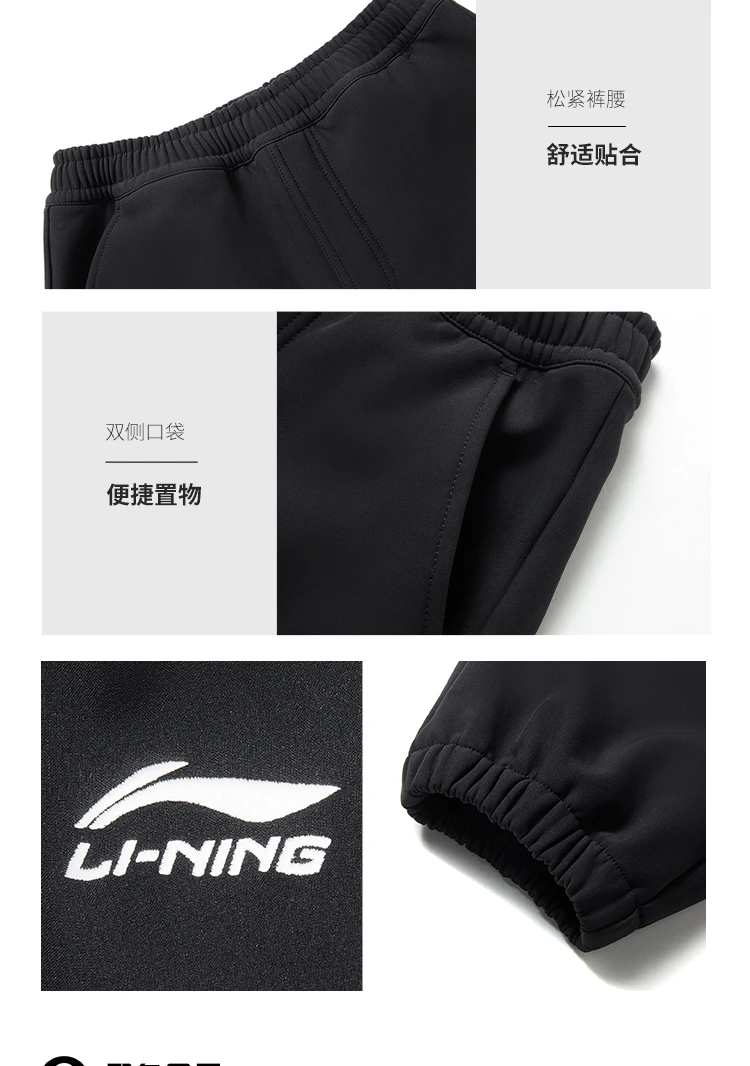李宁男大童束脚加绒保暖抗静电宽松运动长裤YYKV093