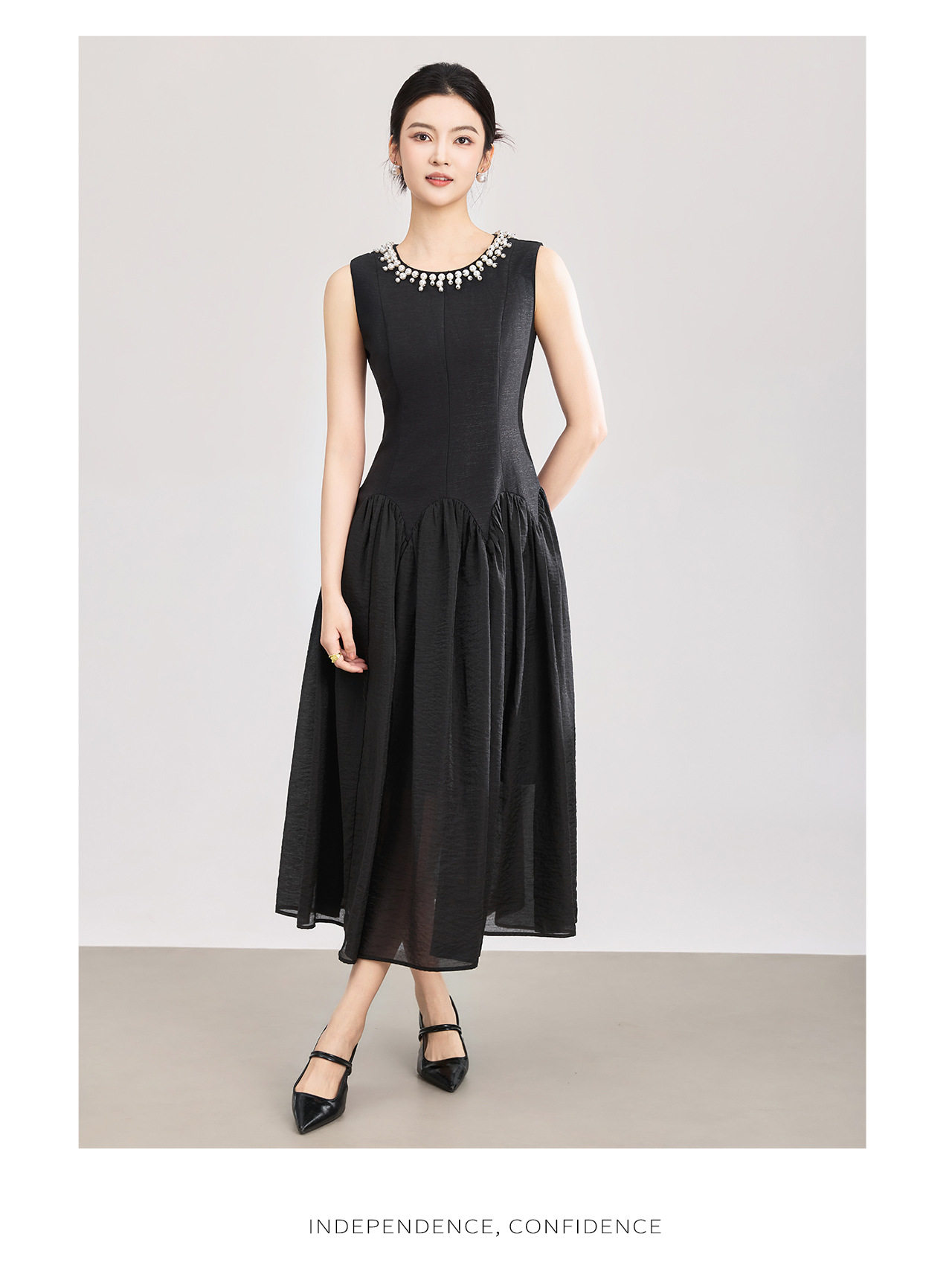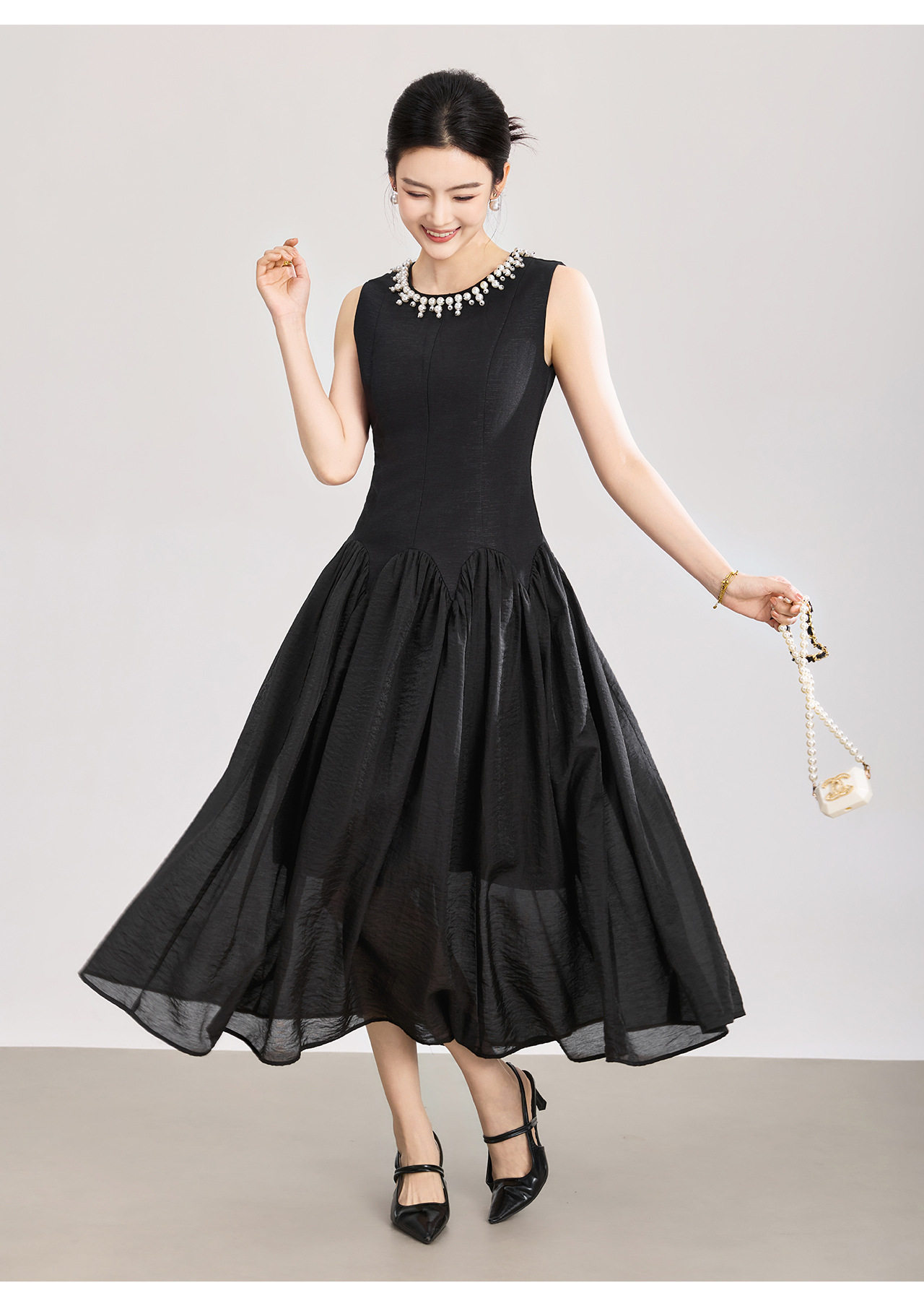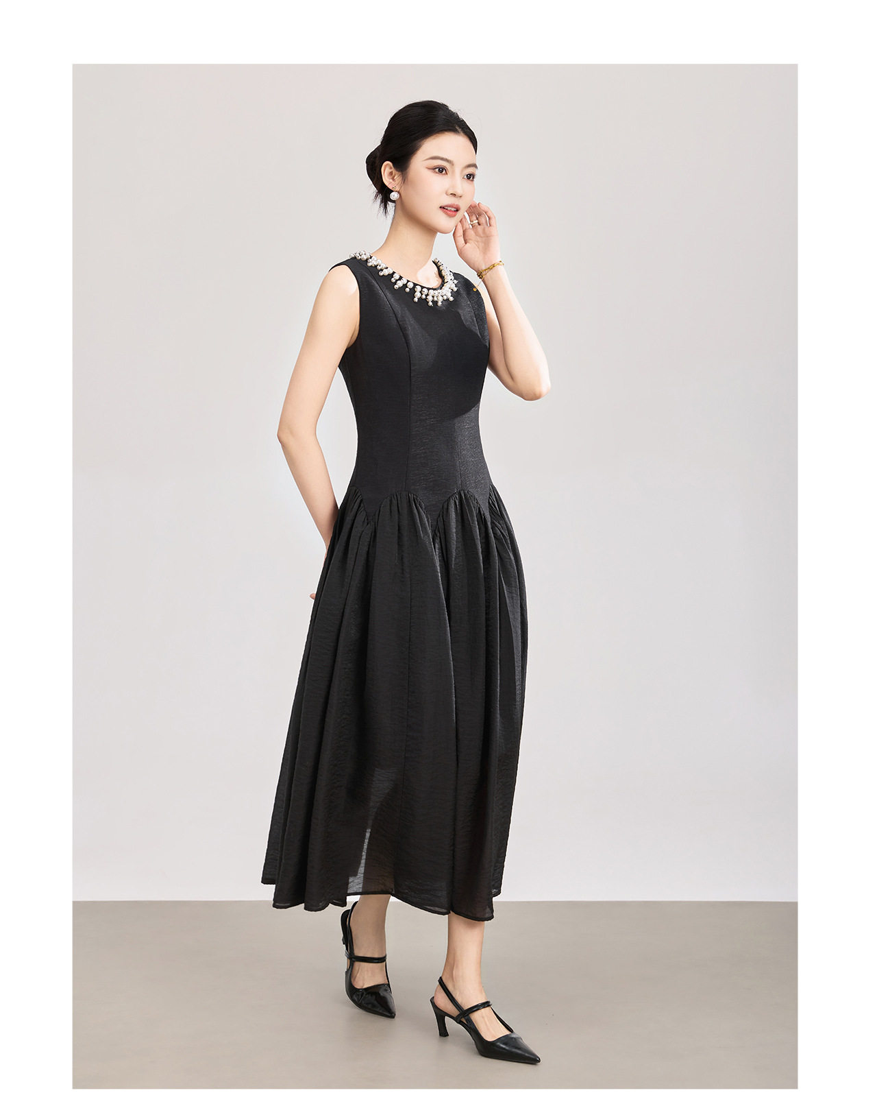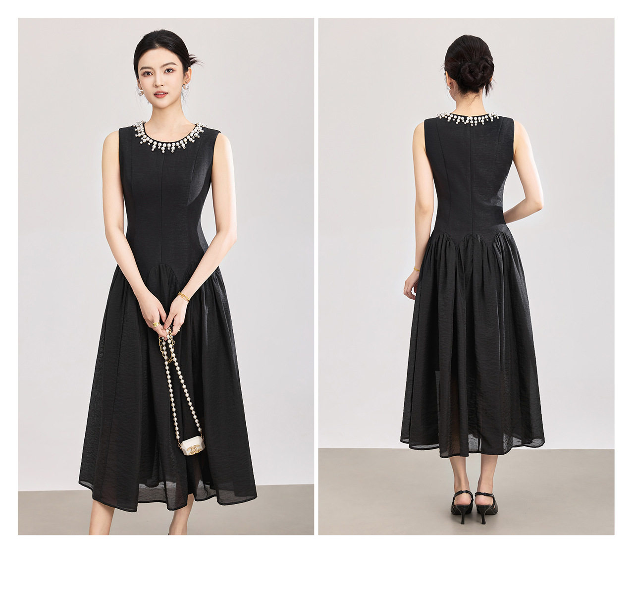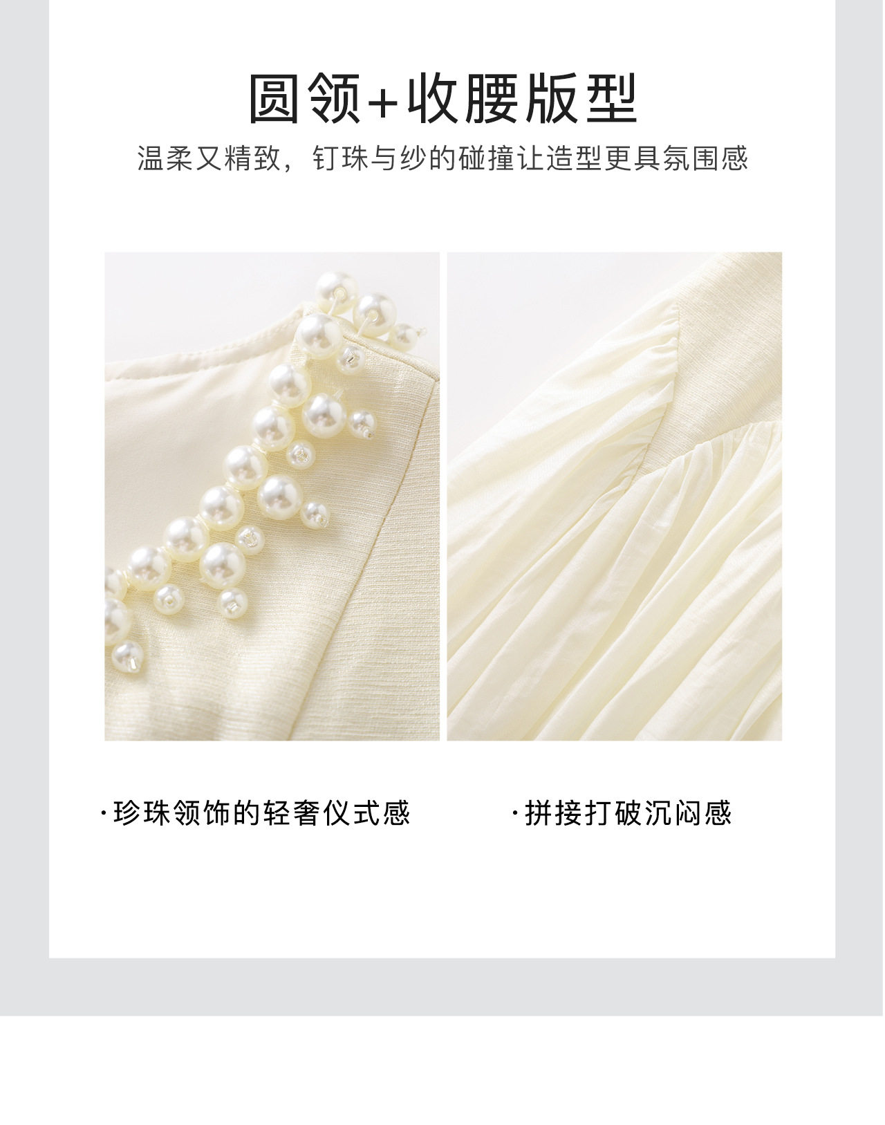 「高货wl」全新升级【铂金会员349/天猫469/差价120】(04427)洛诗琳气质重工钉珠连衣裙2026新款天丝绉纱收腰茶歇裙女