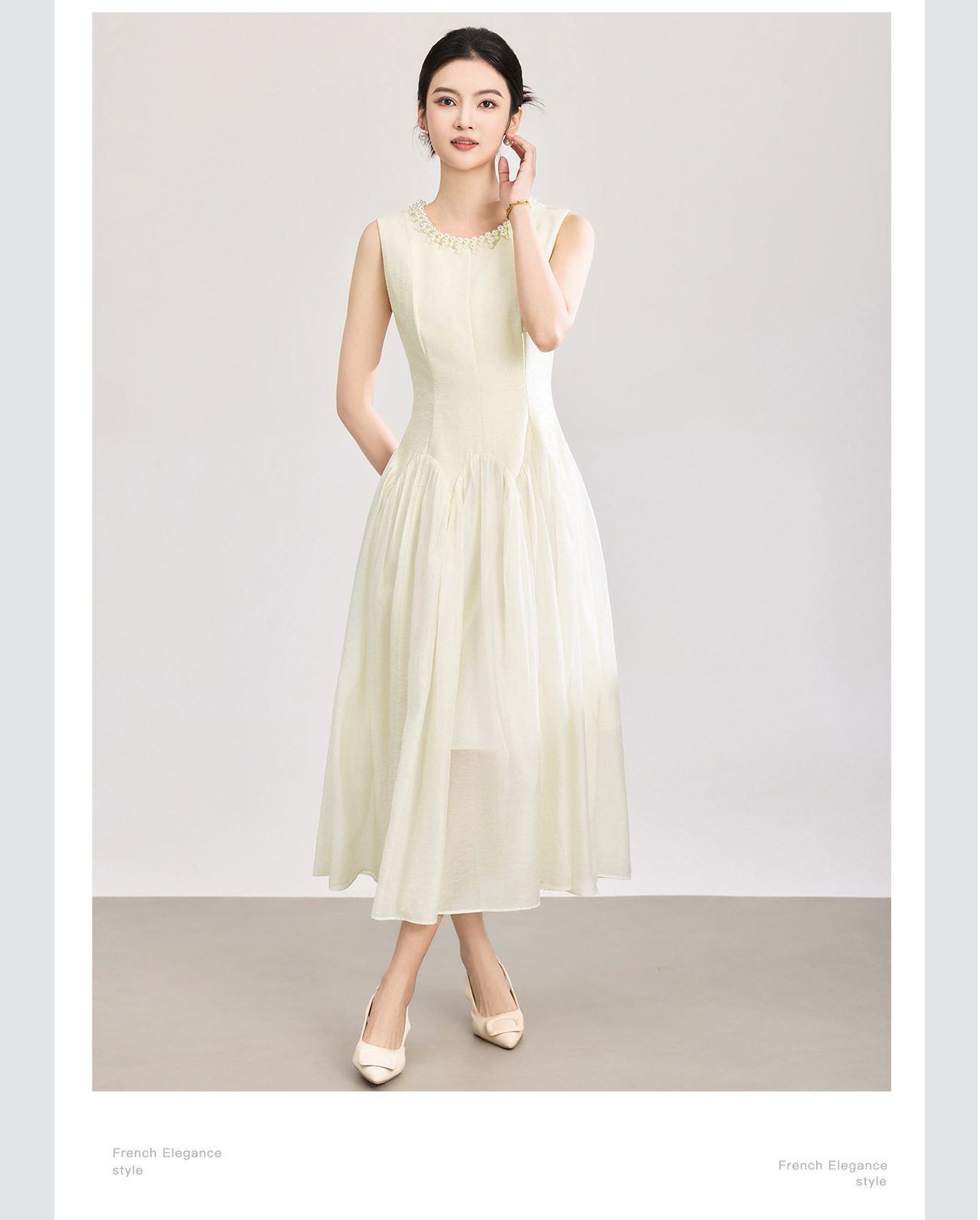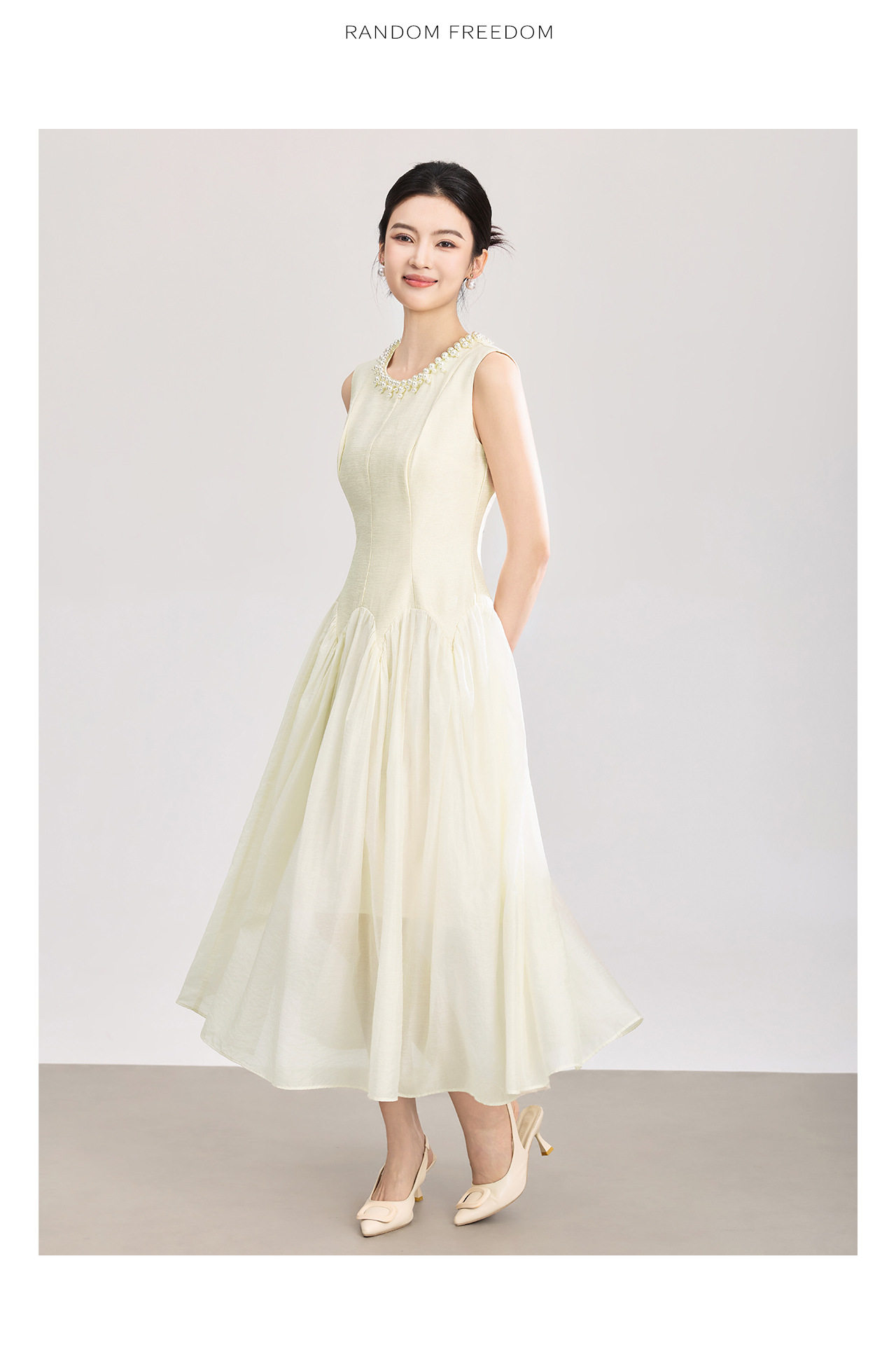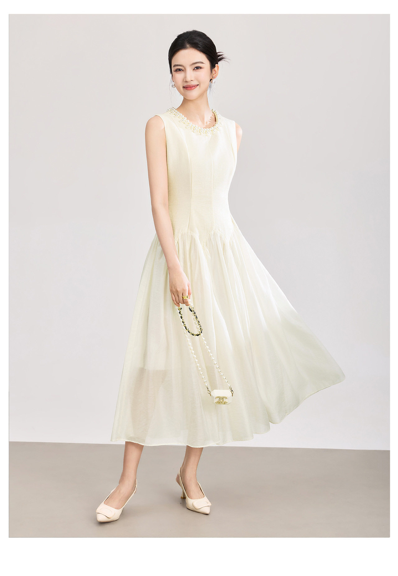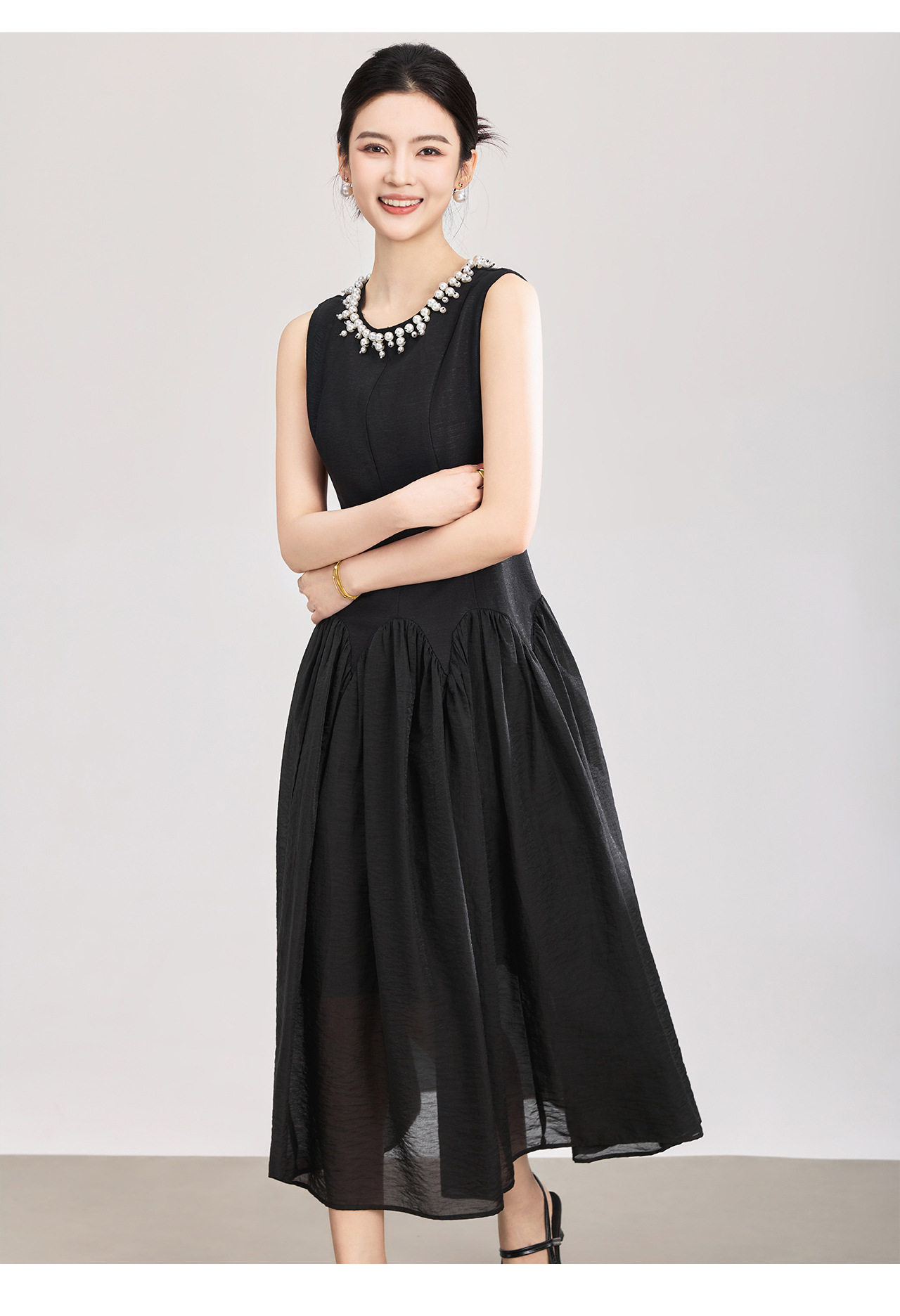 「高货wl」全新升级【铂金会员349/天猫469/差价120】(04427)洛诗琳气质重工钉珠连衣裙2026新款天丝绉纱收腰茶歇裙女