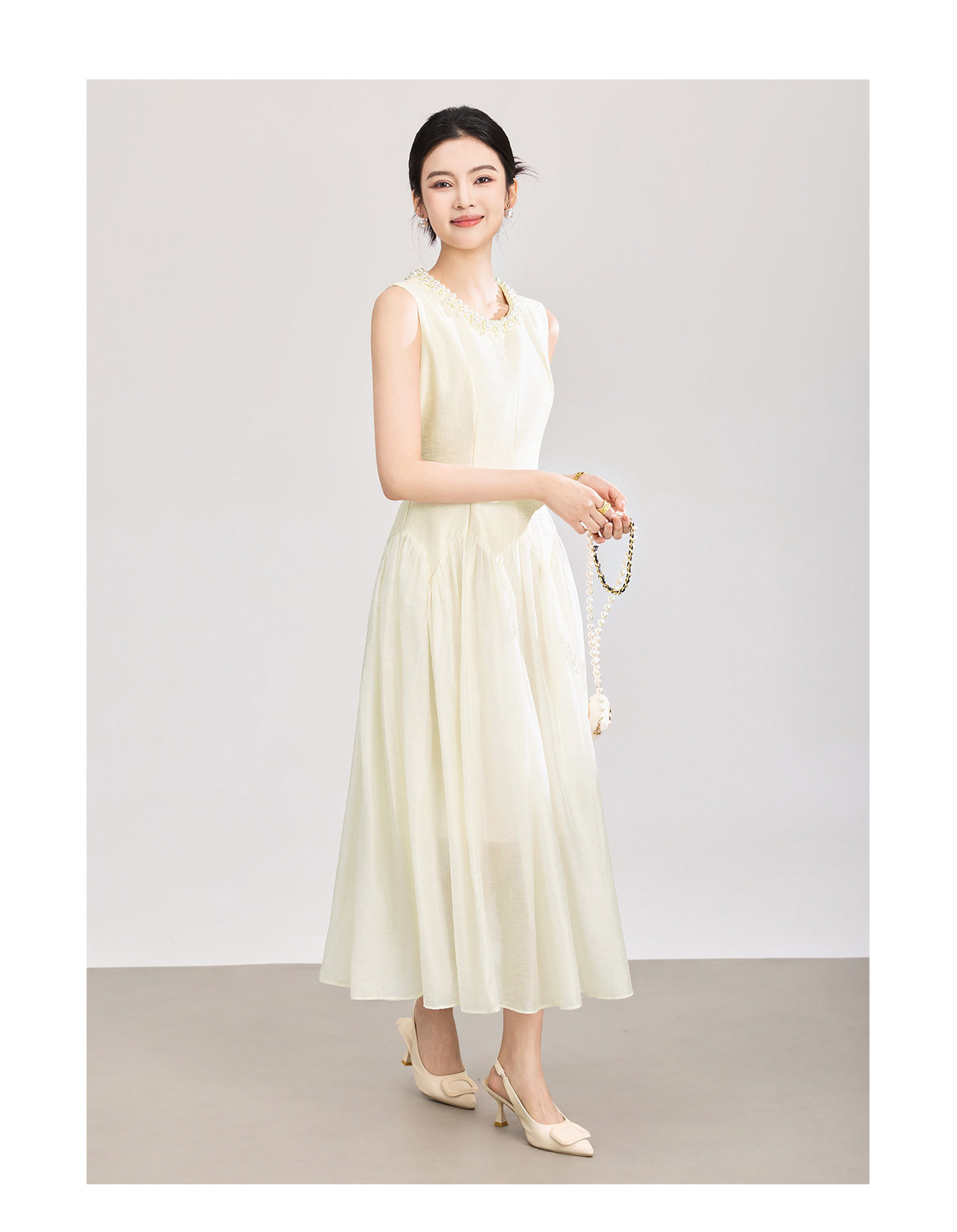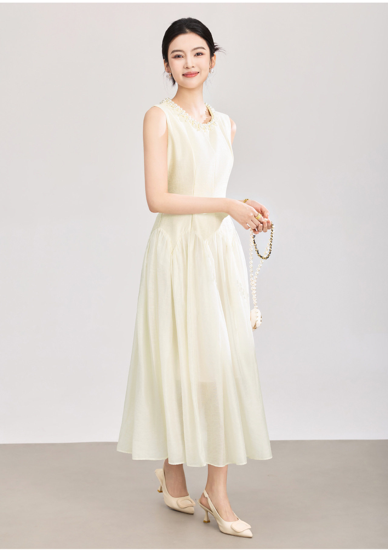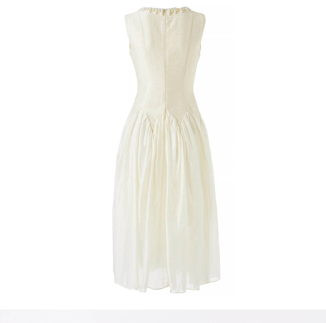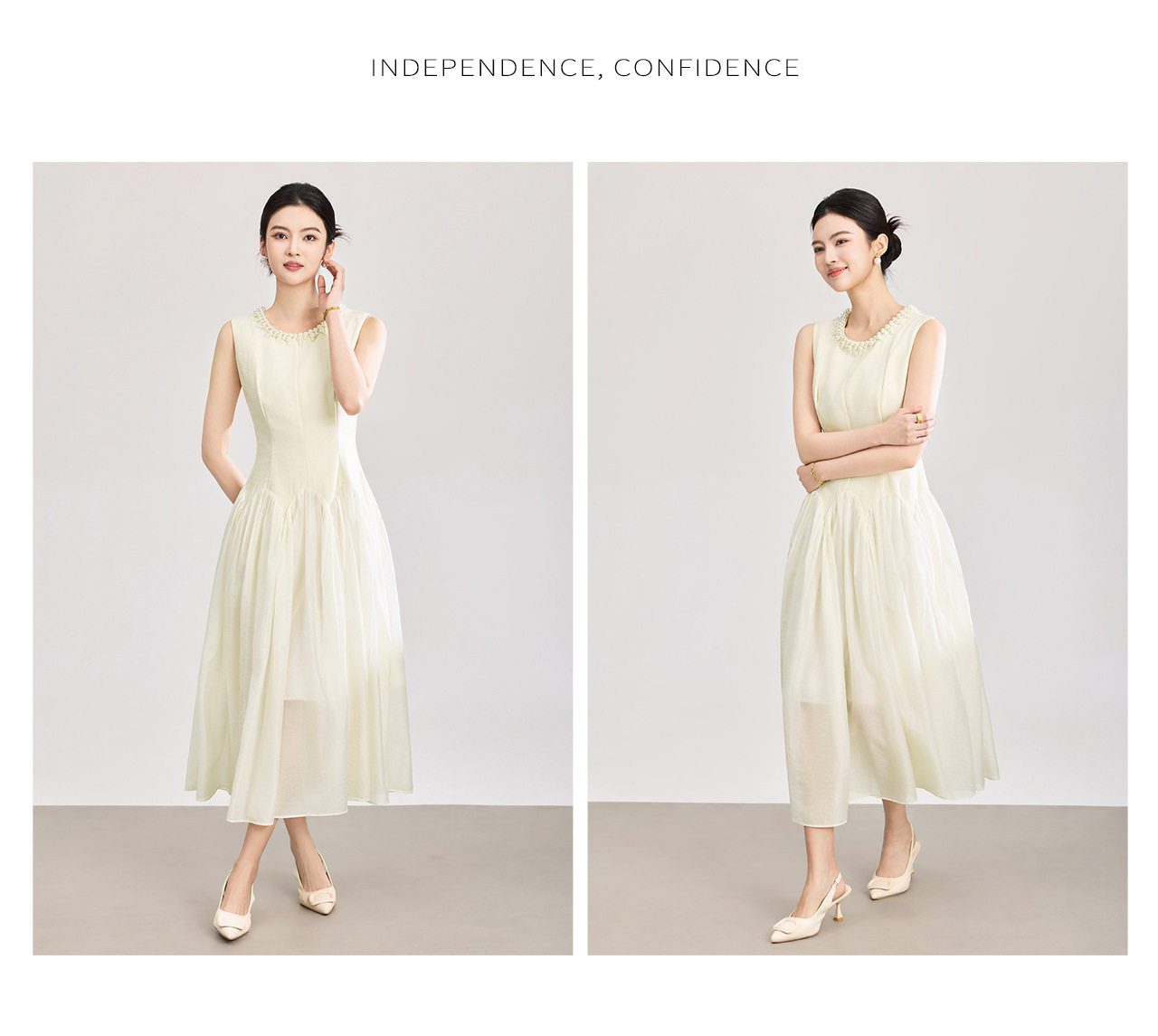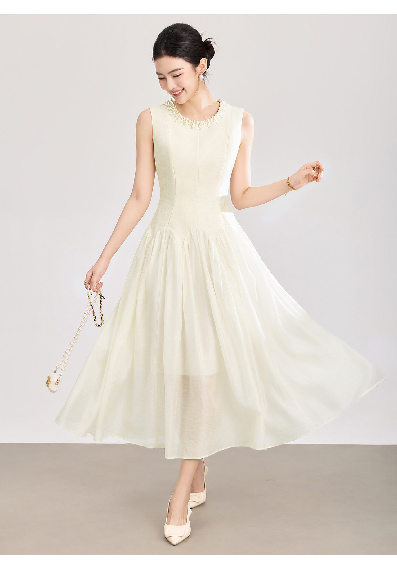 「高货wl」全新升级【铂金会员349/天猫469/差价120】(04427)洛诗琳气质重工钉珠连衣裙2026新款天丝绉纱收腰茶歇裙女