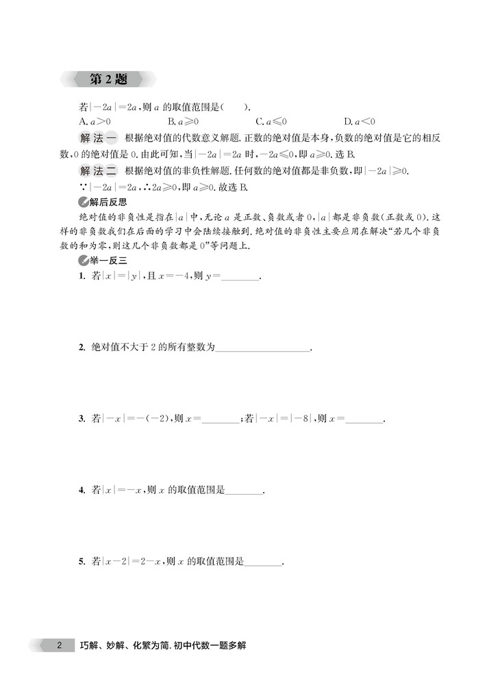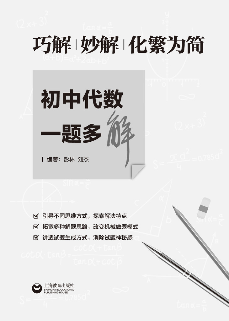 《巧解、妙解、化繁为简.初中代数一题多解》通过对典型例题的“一题多解”,重点解决三个方面的问题:第一,解题思路和计划是如何想出来的?以帮助学生学会“怎么想”;第二,执行解题计划时应注意哪些问题?以帮助学生学会“怎么做得更好”;第三,解题后通过“反思”“点拨”及时总结经验,力求透过解法,高屋建瓴,洞察本质,通过巧解、妙解,化繁为简,达到举一反三的水平。