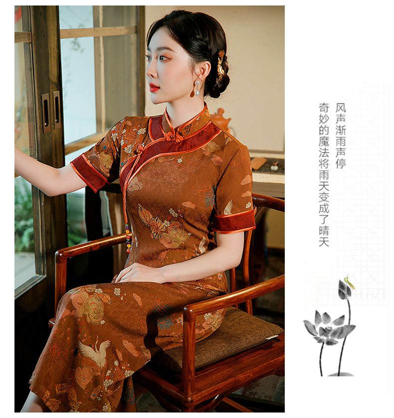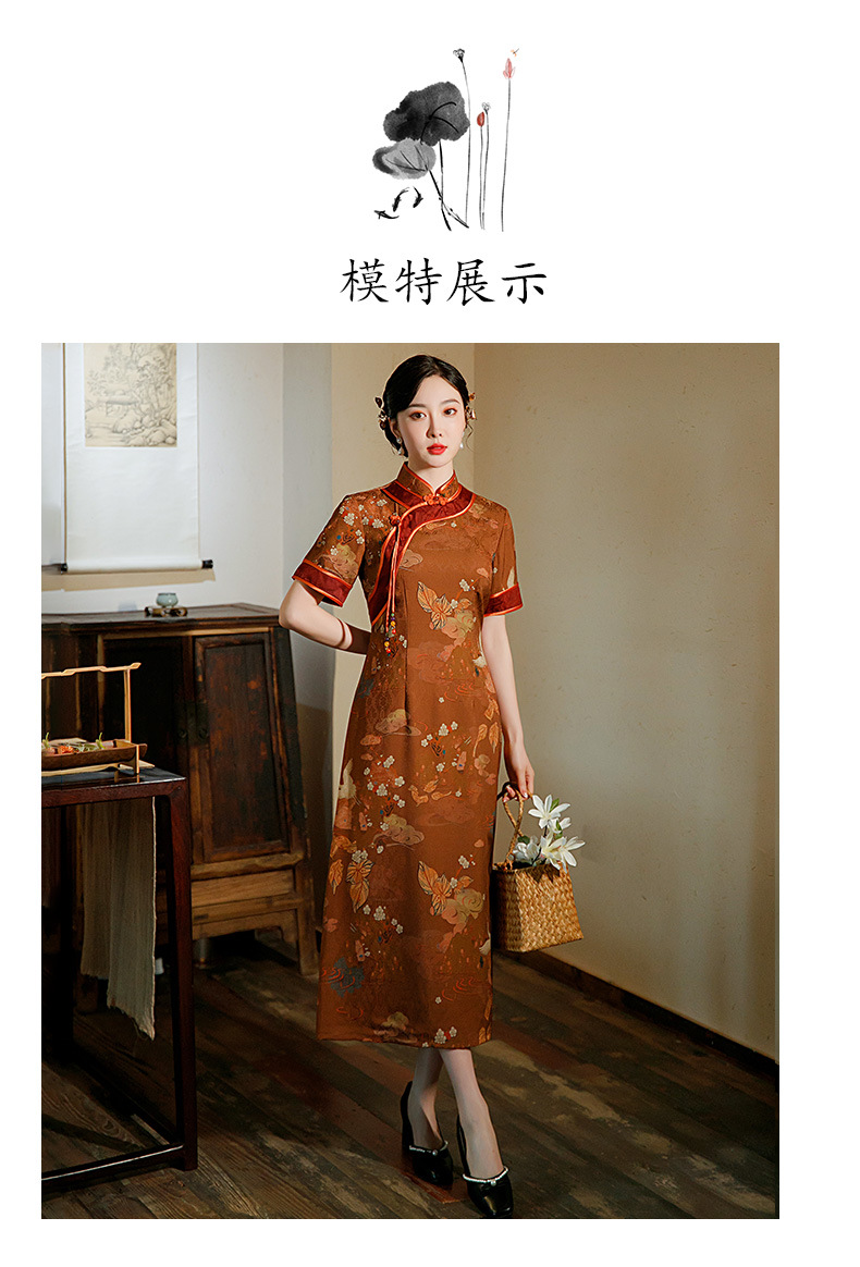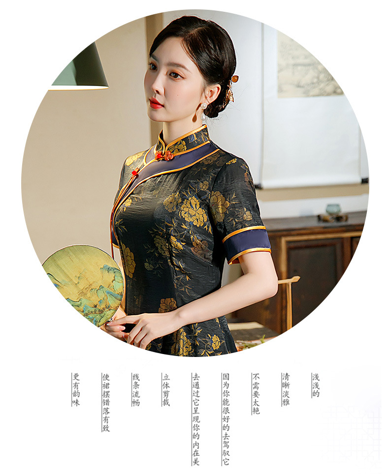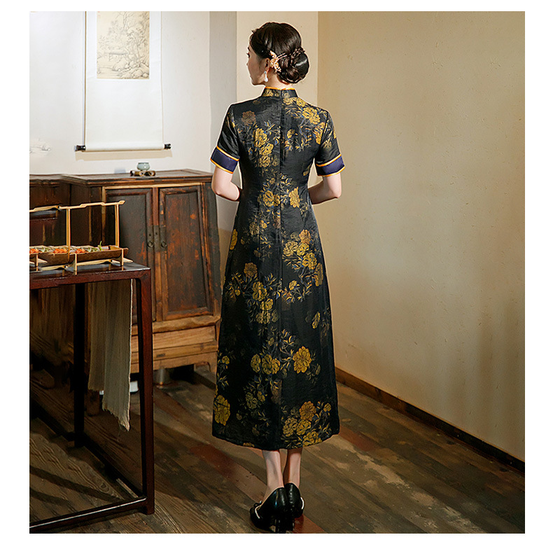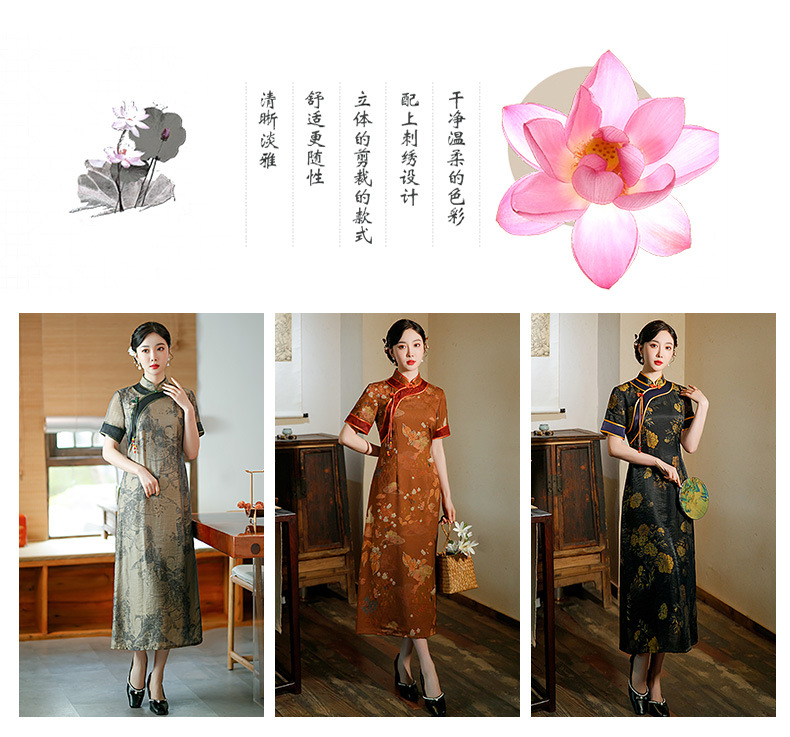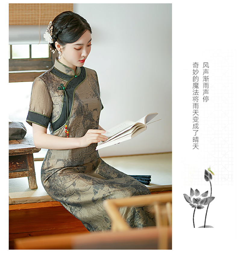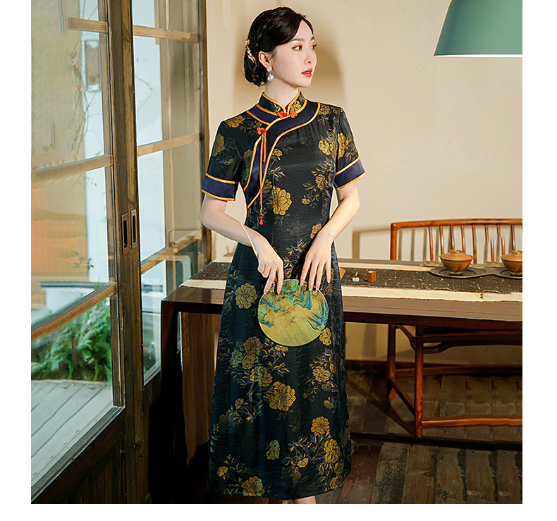 GSJ-3086新款夏季旗袍长款短袖人丝时尚日常优雅淑女大码连衣裙