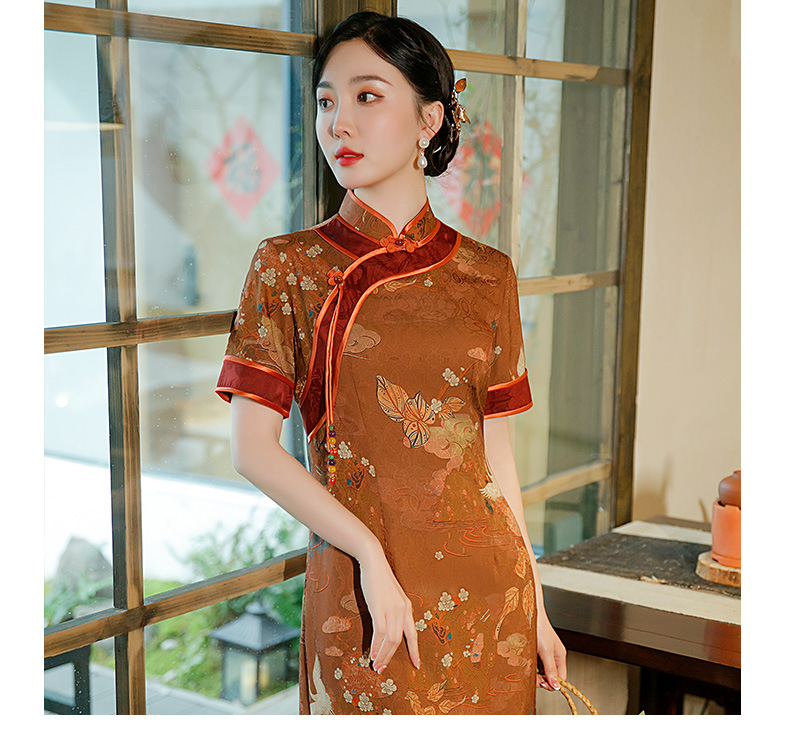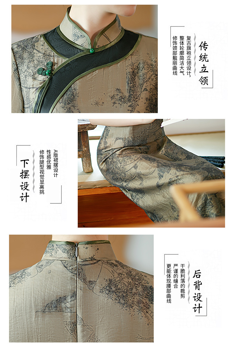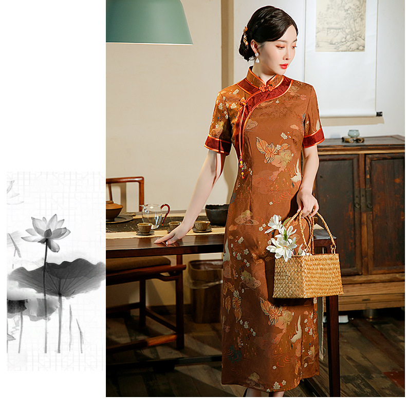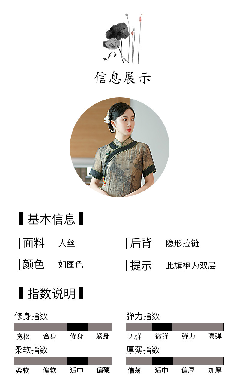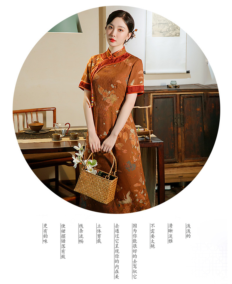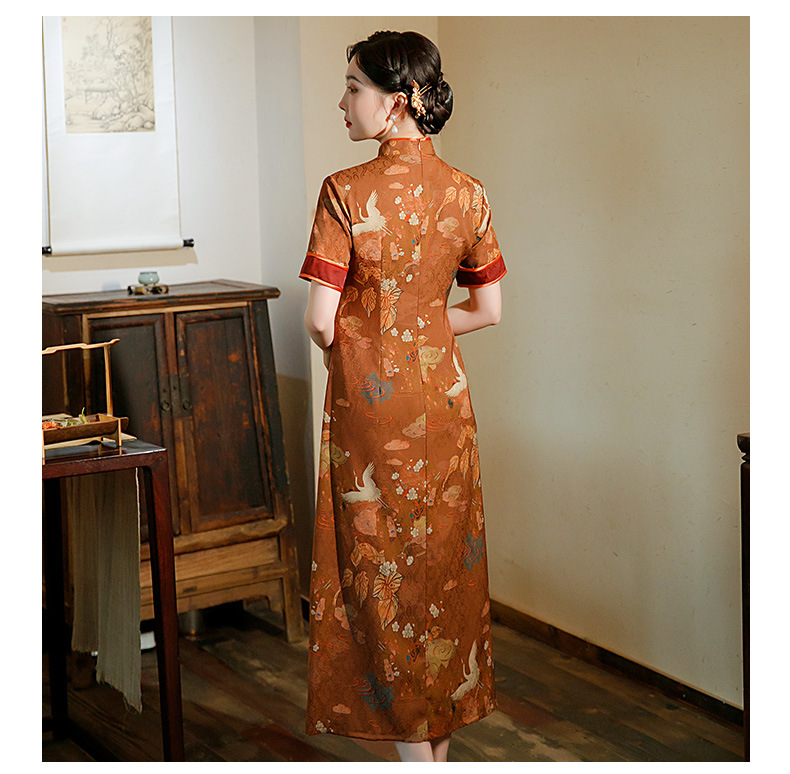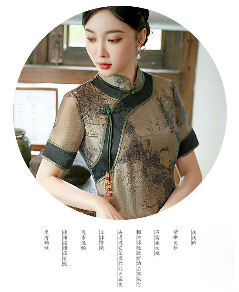 GSJ-3086新款夏季旗袍长款短袖人丝时尚日常优雅淑女大码连衣裙