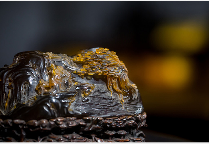 清 琥珀观沧海人物山子摆件