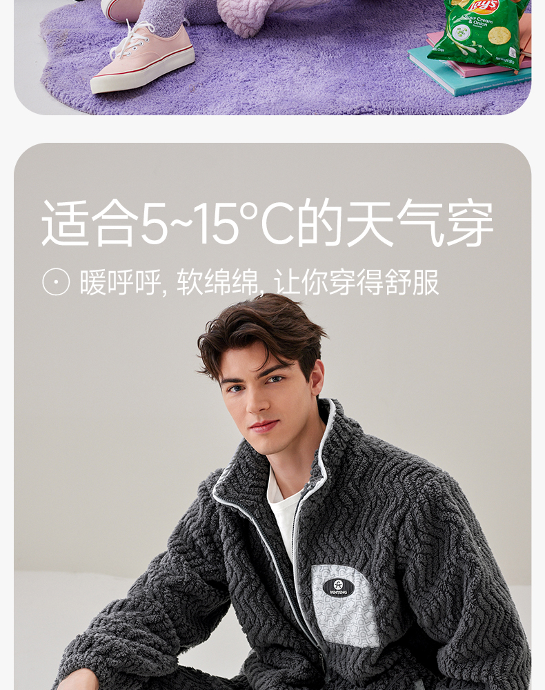 芬腾【范丞丞同款】情侣睡衣珊瑚绒秋冬加厚女士套装大码家居服男
