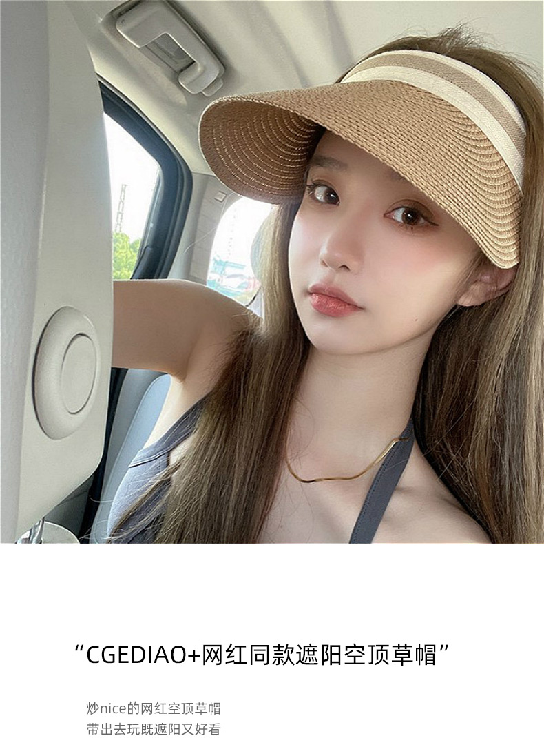 雀说 遮阳帽子女夏季空顶防晒防紫外线沙滩出游草编草帽太阳帽5ZF-3172
